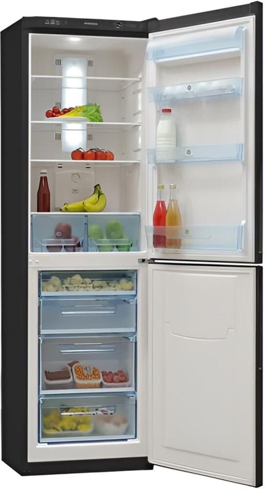 Габариты (ШxГxВ) 59,5x63x202.5 см Вес 74 Общий объем 344 л Объем холодильной камеры 220 л Объем морозильной камеры 124 л Номинальный потребляемый ток, А 0.8 Низкотемпературное отделение (НТО) Система оттаивания морозильной камеры авто Температура в морозильной камере, °C -18 Замораживающая способность, кг/сутки 10,5 Холодильная камера Система оттаивания холодильной камеры авто Температура в холодильной камере, °C 0 ... 10 Количество полок/сосудов в камере, шт. 4 Количество полок на двери, шт. 4 Материал полок в камере стекло Освещение холодильной камеры LED лампа Эффективность и энергопотребление Класс энергоэффективности A Суточный расход электроэнергии, кВт/ч 1.03 Частота, Гц 50 Корректированный уровень звуковой мощности, дБA 40 Цвет черный