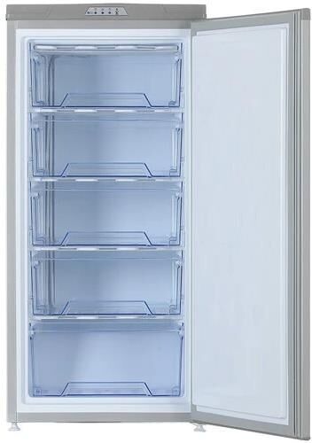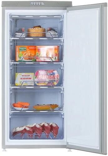 Габариты (ВхШхГ): 122х57,4х61см; Объем: 180л; Вес: 47кг; Однокамерный морозильник на 5 ящиков; Управление: электромеханическое; Размораживание морозильной камеры: ручное; Производительность замораживания, кг/сут: не менее 14; Потребление энергии: 281 кВт/год; Перевешиваемые двери; Цвет: металлик искристый