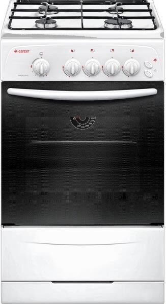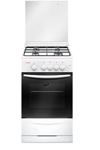 Габариты (ШхГхВ): 50x57x85см; Цвет: белый; Газовые горелки: 4; Электророзжиг горелок стола; Кнопка розжига на панели; Решетки горелок стола стальные; Полезный объём духовки: 42 л; Газ-контроль духовки; Направляющие духовки: штампованные; Термоуказатель; Ящик для посуды и принадлежностей: выдвижной; Подсветка духовки: одинарная; Стеклянная крышка