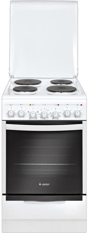 Габариты, ШхГхВ, см: 50x58.5x85; Цвет: белый; Дизайн: классический; Ширина, см: 50; Фасад: эмалированный; Варочная поверхность: эмалированная; Крышка стола: металлическая крышка; Количество зон приготовления: 4; Класс энергоэффективности: А; Диапазон номинальных напряжений, В: 220-230; Номинальная потребляемая мощность электроэнергии, кВт: 5,05-5,52; Объем духовки, л: 55; Мощность верхнего ТЭН духовки, кВт: 0,8; Мощность нижнего ТЭН духовки, кВт: 1,2; Управление: механическое; Таймер: электромеханический; Гриль: электрический; Подсветка духовки: одинарная; Направляющие духовки: съемные проволочные; Терморегулятор; Ящик для посуды и принадлежностей; выдвижной ящик; Ножки регулировочные; Сетевой шнур и вилка: в наличии; Комплектность: решетка духовки, жаровня 2 шт