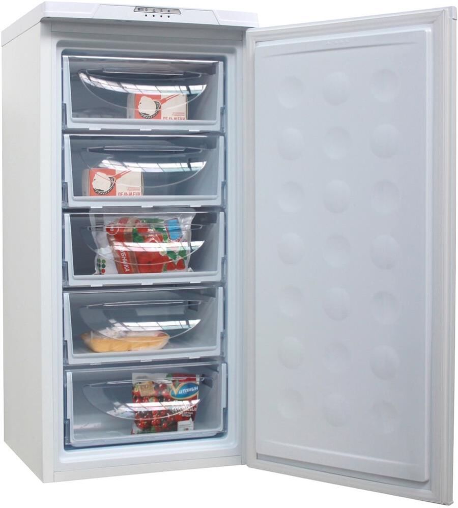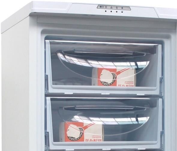 Габариты (ВхШхГ): 122х57,4х61см; Объем: 180л; Вес: 47кг; Однокамерный морозильник на 5 ящиков; Управление: электромеханическое; Размораживание морозильной камеры: ручное; Производительность замораживания, кг/сут: не менее 14; Потребление энергии: 281 кВт/год; Перевешиваемые двери; Цвет: белый