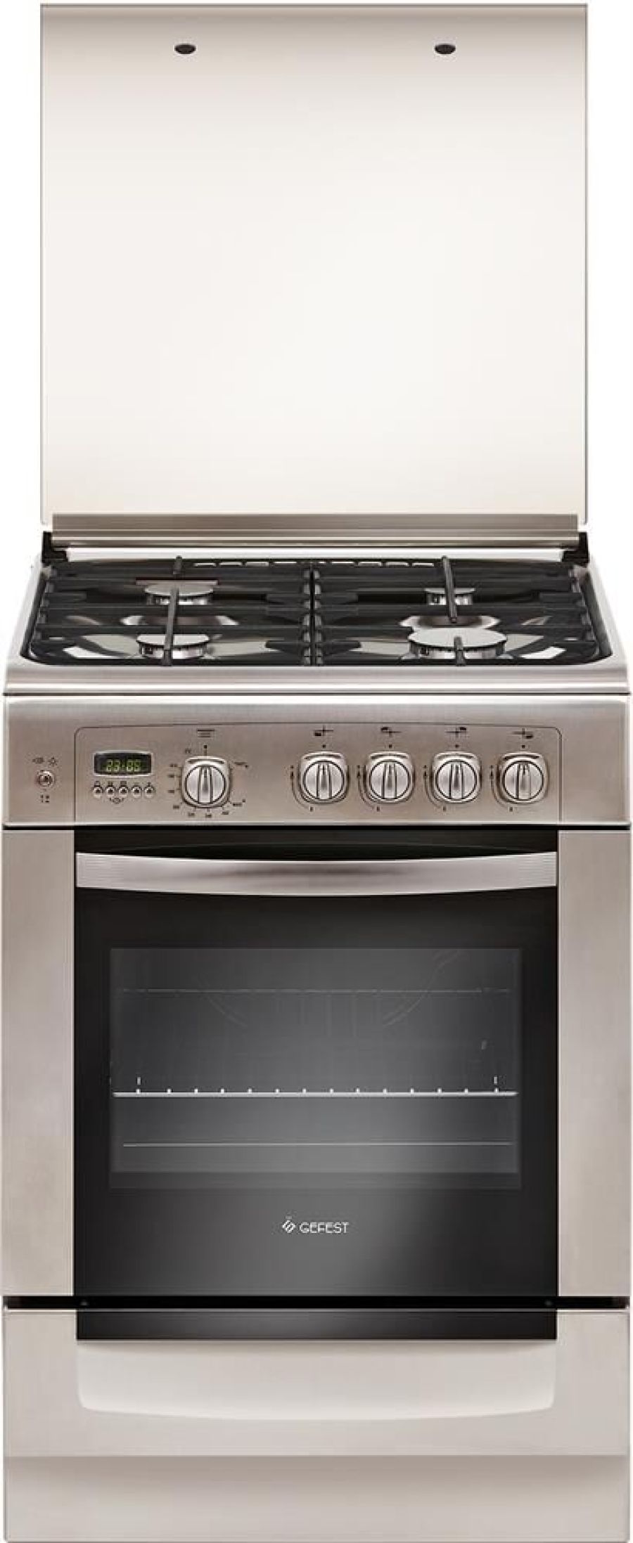 Габаритные размеры: 60х60х85 см Цвет: нержавеющая сталь Объем духовки, л: 52 Количество зон приготовления: 4 Варочная поверхность: нержавеющая сталь Фасад: нержавеющая сталь Крышка: стеклянная крышка Вертел с электроприводом Съемные проволочные направляющие духовки Выдвижной ящик для посуды и принадлежностей Таймер электронный многофункциональный Газ-контроль горелок стола Терморегулятор (термостат) Газ-контроль духовки Гриль Шашлычница Ножки регулировочные Электророзжиг горелок, встроенный в ручки Подсветка духовки двойная Электророзжиг духовки, встроенный в ручку