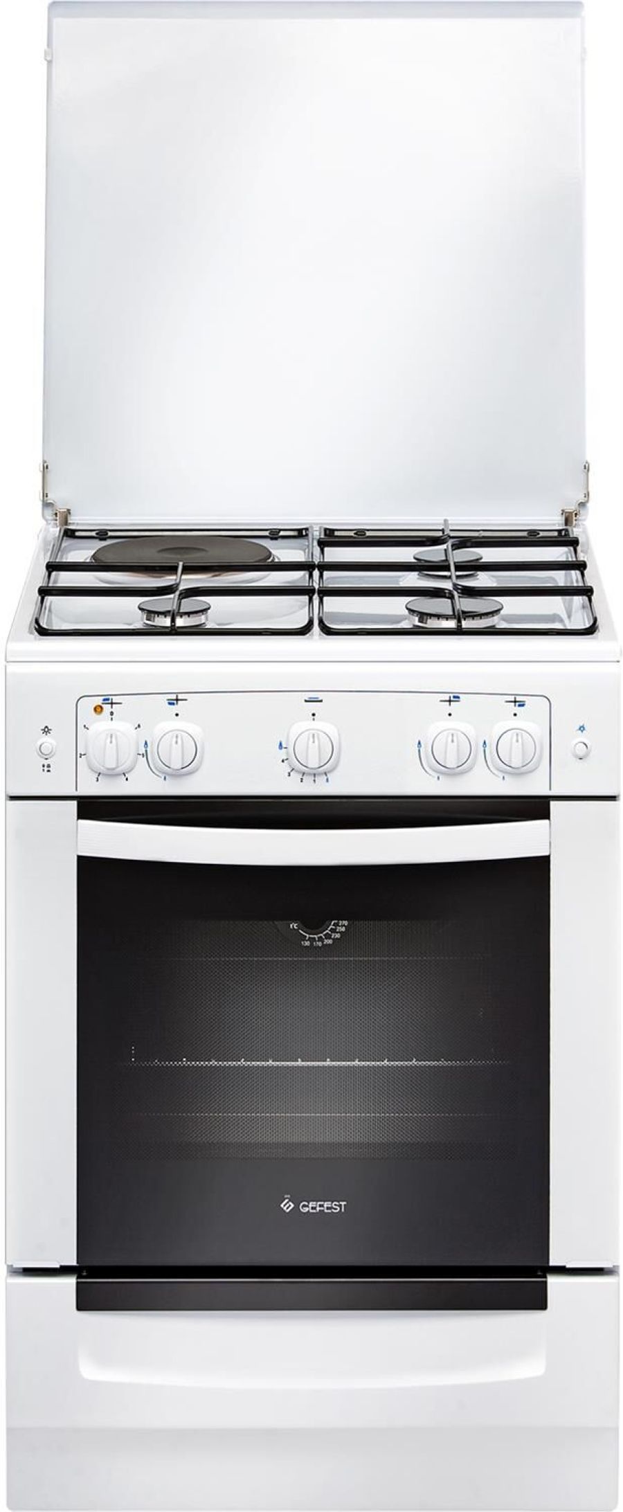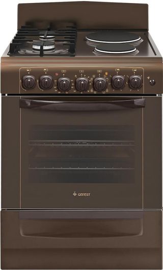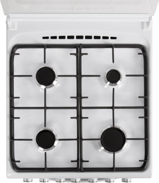 Габариты, ШхГхВ, см: 60x60x85; Цвет: белый; Дизайн: классический; Ширина, см: 60; Фасад: эмалированный; Варочная поверхность: эмалированная; Решетки стола: стальные; Крышка стола: металлическая; Присоединительная резьба газопровода: G 1/2; Класс энергоэффективности: A; Номинальная потребляемая мощность электроэнергии, кВт; 1,39-1,52; Тип духовки: газовая; Мощность горелки духовки, кВт: 2,35; Объем духовки, л: 52; Газ-контроль духовки; Электророзжиг духовки: кнопка на панели; Электророзжиг горелок стола: кнопка на панели; Подсветка духовки: одинарная; Направляющие духовки: штампованные; Термоуказатель духовки; Ящик для посуды и принадлежностей: выдвижной ящик; Ножки регулировочные; Сетевой шнур и вилка: в наличии; Комплектность: жаровня, противень, комплект сменных сопел, решетка духовки