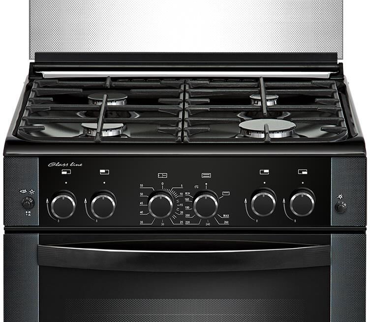 Габариты (ШхГхВ) 60х60х85 см. Цвет: черный Объем духовки, л: 52 Количество зон приготовления: 4 Варочная поверхность: эмалированная Фасад: стеклянный Крышка: стеклянная крышка Вертел с электроприводом Съемные проволочные направляющие духовки Выдвижной ящик для посуды и принадлежностей Таймер механический Газ-контроль духовкиТерморегулятор (термостат) Гриль Чугунные решетки горелок стола Ножки регулировочные Электророзжиг горелок, кнопка розжига на панели Подсветка духовки двойная Электророзжиг духовки, кнопка розжига на панели