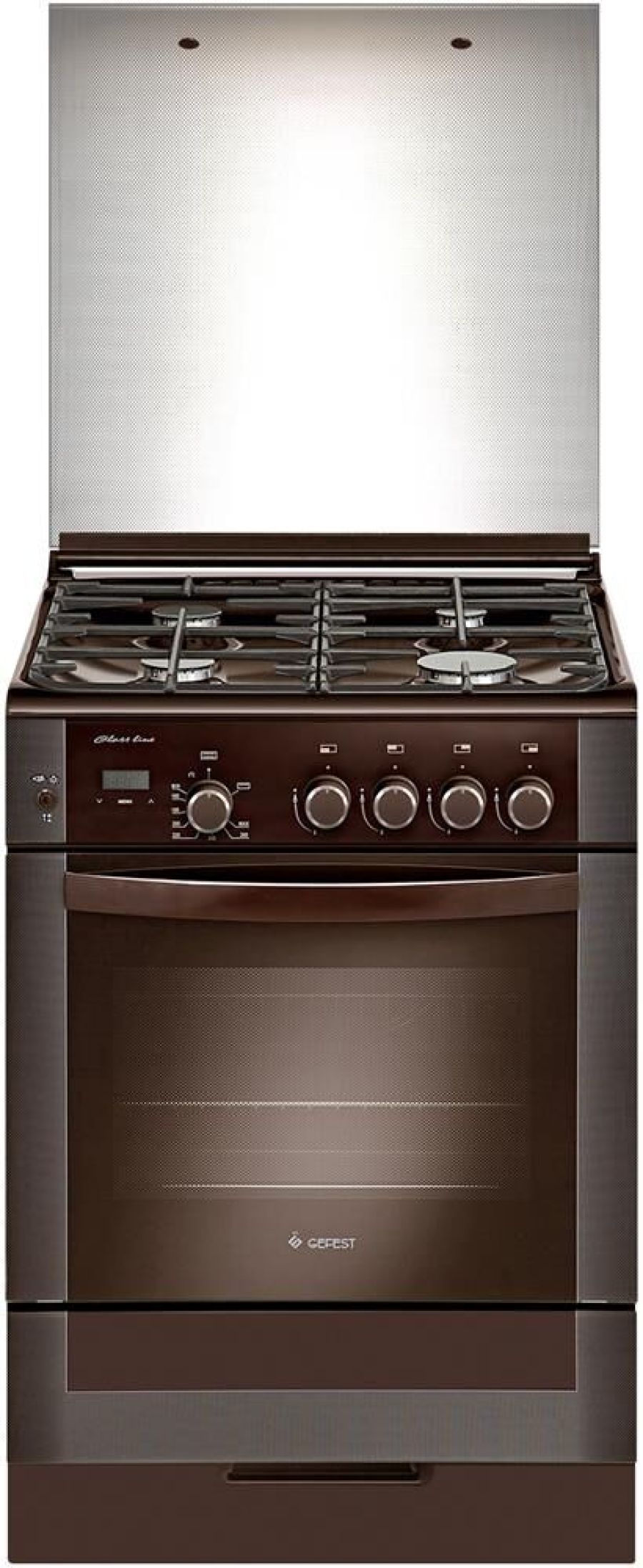 Габариты, ШхГхВ, см: 60x60x85; Цвет: коричневый; Дизайн: классик; Ширина, см: 60; Фасад: закаленное стекло; Варочная поверхность: эмалированная; Решетки стола: чугунные; Крышка стола: стеклянная; Класс электробезопасности: I; Объем духовки, л: 52; Мощность горелки духовки, кВт: 3,1; Мощность гриль-горелки, кВт: 1,9; Таймер: сенсорный; Газ-контроль духовки; Газ-контроль горелок стола; Электророзжиг духовки: встроен в ручку; Электророзжиг горелок стола: встроен в ручки; Гриль: газовый; Вертел с электроприводом; Подсветка духовки; Направляющие духовки: съемные проволочные; Терморегулятор (термостат); Ящик для посуды и принадлежностей: выдвижной; Ножки регулировочные; Сетевой шнур и вилка: в наличии; Стекло дверцы духовки: двойное; Комплектность: жаровня, противень, решетка духовки; Комплект сменных сопел