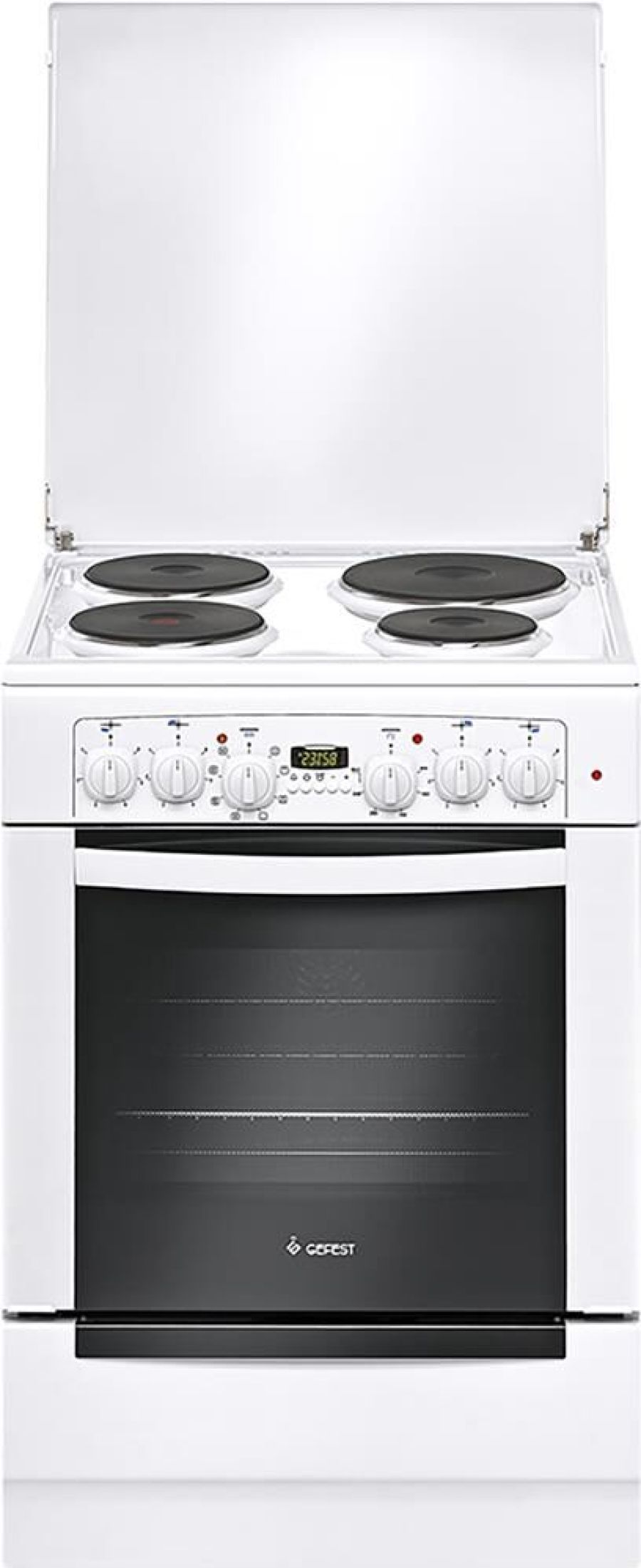 Габариты, ШхГхВ, см: 60x60x85; Цвет: белый; Дизайн: классический; Ширина, см: 60; Фасад: эмалированный; Варочная поверхность: эмалированная; Крышка стола: металлическая крышка; Количество зон приготовления: 4; Класс энергоэффективности: А; Диапазон номинальных напряжений, В: 220-230; Номинальная потребляемая мощность электроэнергии, кВт: 7,12-7,78; Объем духовки, л: 55; Конвекция; Мощность верхнего ТЭН духовки, кВт: 0,8; Мощность нижнего ТЭН духовки, кВт: 1,2; Мощность ТЭН вентилятора, кВт: 2,0; ТЭН-гриль: 1,2; Управление: механическое; Таймер: многофункциональный, электронный; Вертел с электроприводом; Ускоренный нагрев с конвекцией; Подсветка духовки: двойная; Направляющие духовки: съемные проволочные; Терморегулятор; Ящик для посуды и принадлежностей: выдвижной ящик; Ножки регулировочные; Сетевой шнур и вилка: в наличии; Комплектность: решетка духовки, жаровня 2 шт.