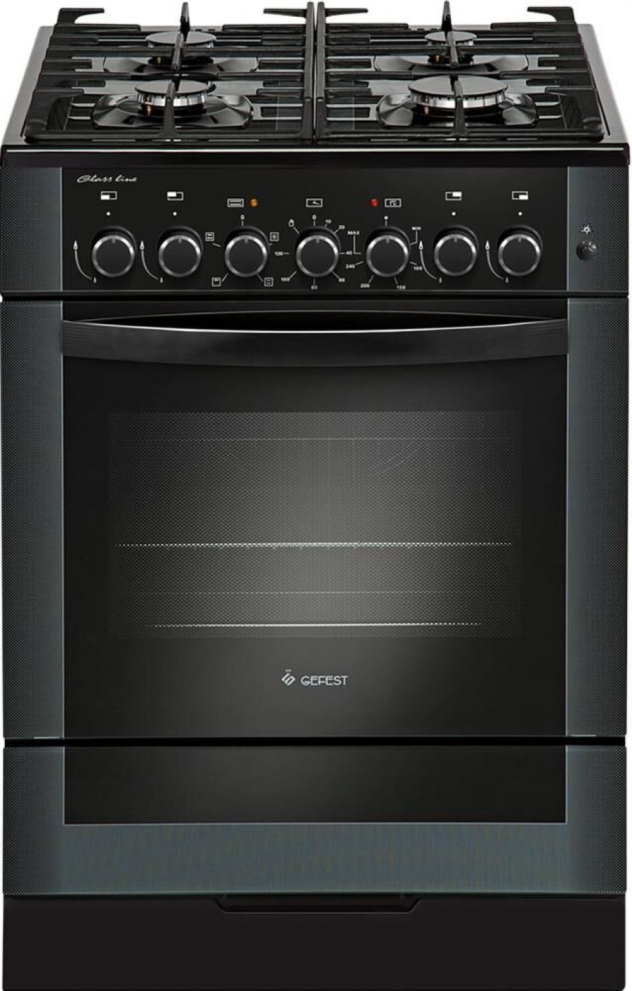 Габариты, ШхГхВ, см: 60x60x85; Цвет: черный; Дизайн: классический; Ширина, см: 60; Фасад: закаленное стекло; Варочная поверхность: закаленное стекло; Решетки стола: чугунные; Присоединительная резьба газопровода: G 1/2; Класс энергоэффективности: A; Номинальная потребляемая мощность электроэнергии, кВт: 1,84-2,02; Тип духовки: электрическая; Мощность верхнего ТЭН духовки, кВт: 0,8; Мощность нижнего ТЭН духовки, кВт: 1,2; Объем духовки, л: 55; Таймер: электромеханический; Электророзжиг горелок стола: кнопка на панели; Гриль: электрический; Вертел с электроприводом; Подсветка духовки: одинарная; Направляющие духовки: съемные проволочные; Терморегулятор (термостат); Ящик для посуды и принадлежностей: выдвижной ящик; Ножки регулировочные; Сетевой шнур и вилка: в наличии; Комплектность: жаровня, накладка для посуды малого диаметра, комплект сменных сопел, решетка духовки