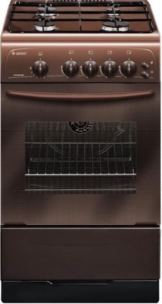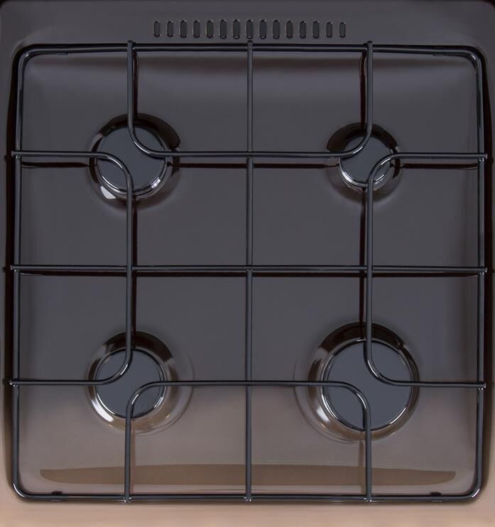 Габариты: 50х57х85см; Цвет: коричневый; Объем духовки, л: 42; Количество зон приготовления: 4; Варочная поверхность: эмалированная; Фасад: эмалированный; Крышка: металлическая; Класс электробезопасности: II; Выдвижной ящик для посуды и принадлежностей; Стальные решетки горелок стола; Газ-контроль духовки; Термоуказатель духовки; Ножки регулировочные; Штампованные направляющие духовки; Подсветка духовки: одинарная; Электророзжиг горелок, кнопка розжига на панели