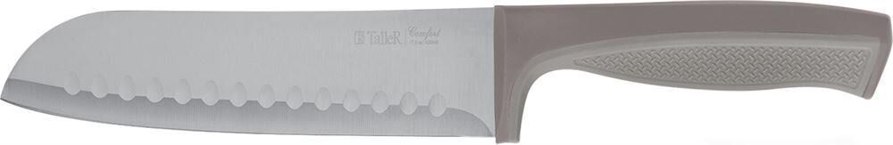 Нож сантоку 17,5см. Лезвие: сталь 3Cr13, толщина 1,8мм. Рукоятка: пластик. Чехол в комплекте. Упаковка: картонная подложка-подвес. Фасовка 6/72.