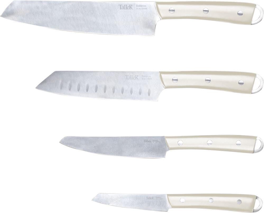 Набор ножей Balance, 4 пр. Материал - нержавеющая сталь, ручки из пластика Состав: нож поварской – 1 шт, 20 см; нож сантоку - 1 шт, 15 см; нож универсальный – 1 шт, 12,5см; нож для чистки – 1 шт, 9 см Рекомендуется ручная мойка Упаковка - коробка
