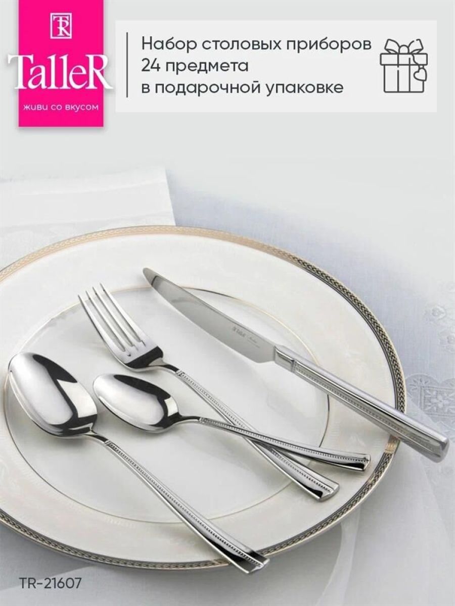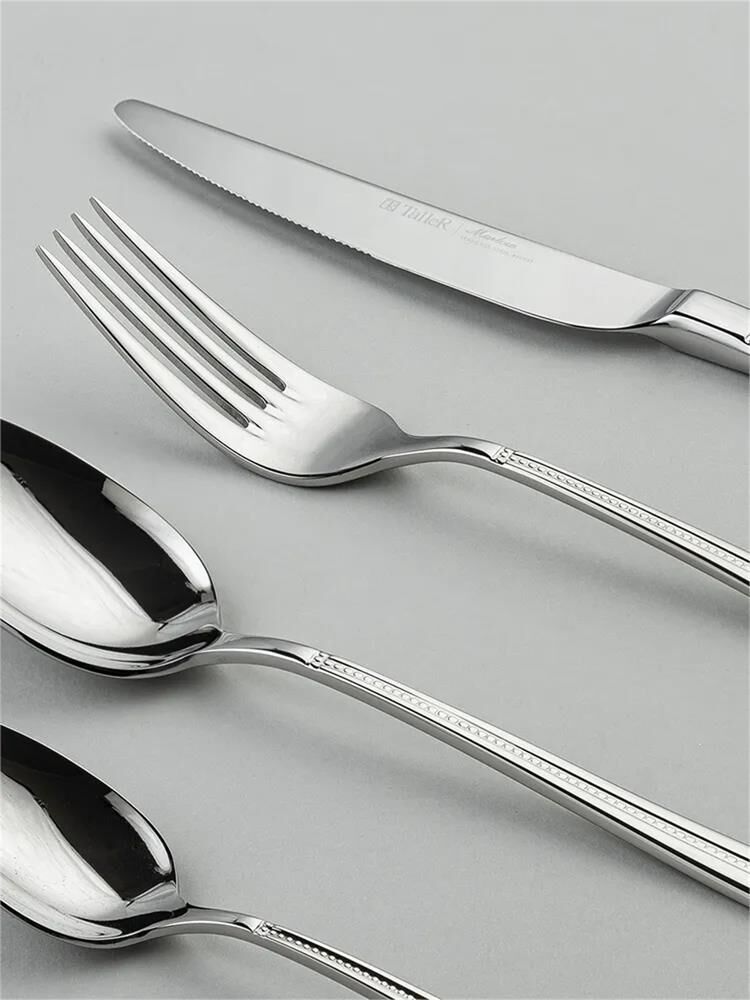 Столовый набор Марлоу, 24 предмета 6 ложек столовых, 6 ложек чайных, 6 вилок, 6 ножей Столовые предметы (кроме ножей) изготовлены из высококачественной нержавеющей стали марки 18/10 Ножи выполнены из высококачественной легированной стали марки 420S37 (2Cr