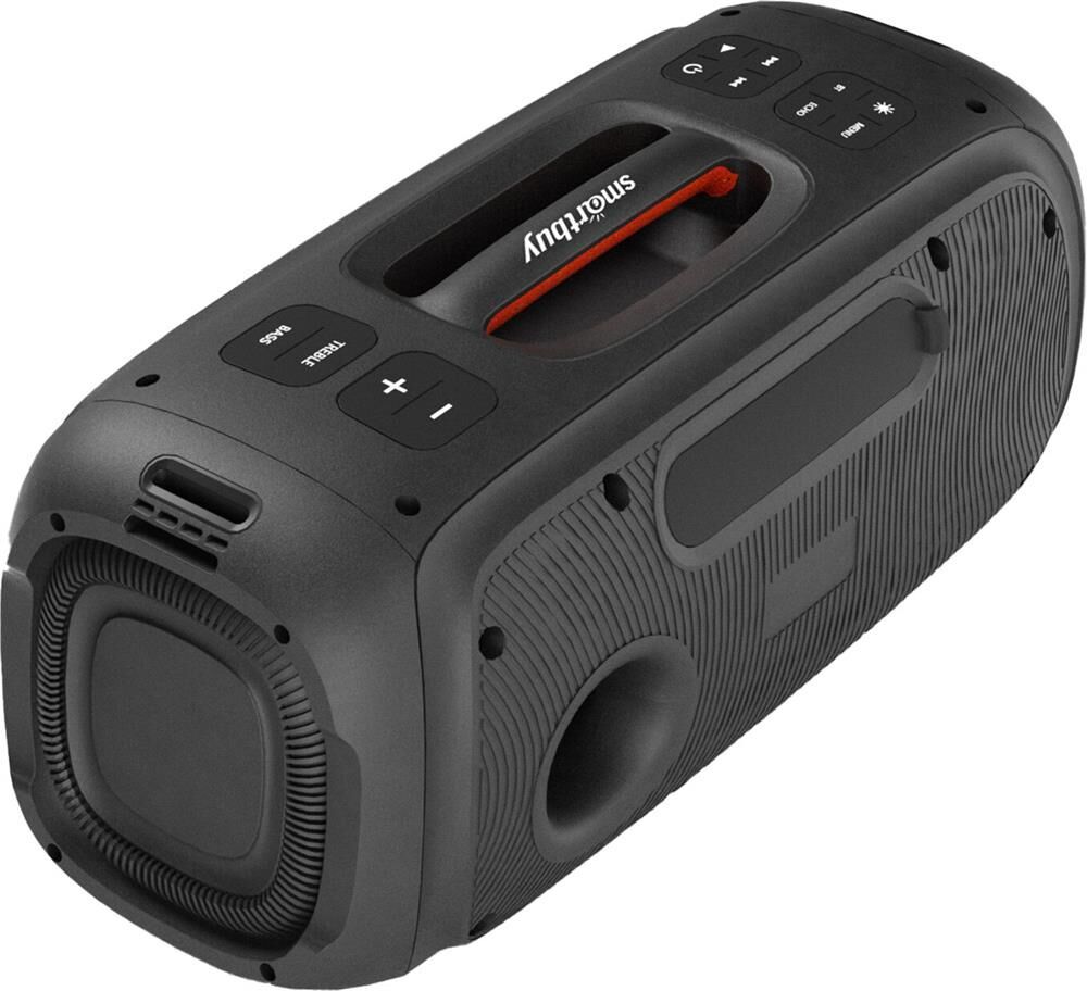Сразу четыре (4!) динамика производят залп на 70Вт, создавая ультра объемную музыкальную ауру. Специальная In/Out-настройка адаптирует воспроизведение музыки к окружению – в помещении или на открытом пространстве. Уникальные режимы подсветки, в том числе отображающие уровень громкости и «эквалайзер». В комплекте пульт беспроводного управления и один микрофон, можно купить еще один и петь вдвоем, ведь микрофонных входа у колонки два. Мощность: 70Вт. Количество динамиков, диаметр: 2 * 152 мм + 2 * 63мм Функционал: Bluetooth, FM-радио, MP3-плеер, управляемая RGB-подсветка, караоке, LED-экран, эквалайзер, TWS. Емкость аккумулятора / напряжение: 5400мАч / 7,4В. Время автономной работы: до 8 часов. Размеры колонки: 500мм х 230мм х 210мм Вес колонки: 6.0кг