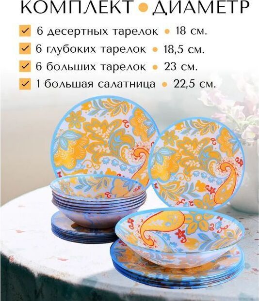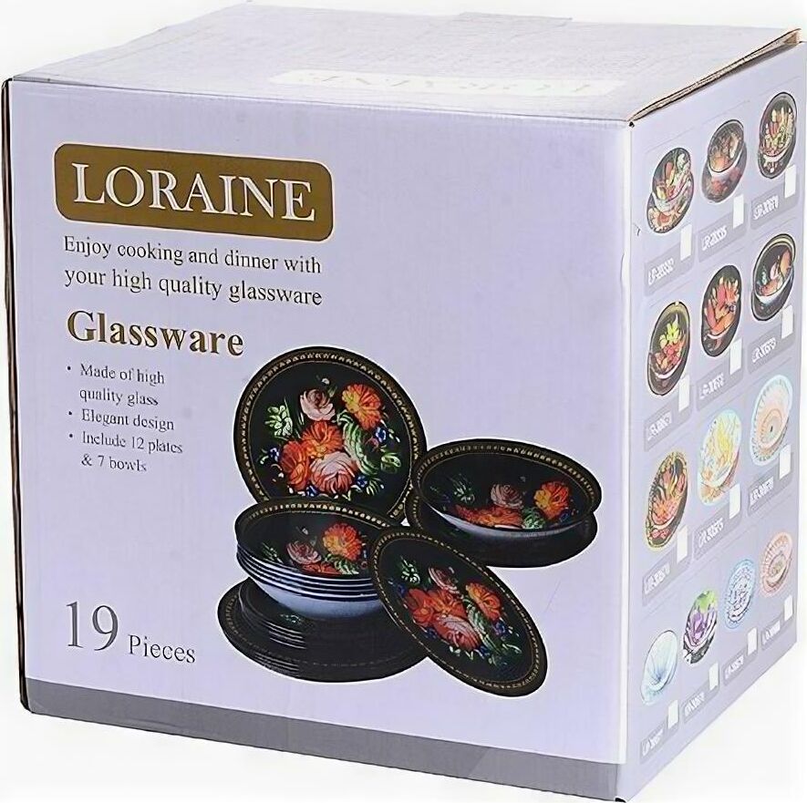Набор посуды LORAINE выполнен из стекла и декорирован красочным цветочным рисунком. Данный набор предназначен для сервировки обеденного стола на 6 персон. Форма изделий круглая. Классический дизайн сочетается в нем с максимальной функциональностью. Такой набор послужит отличным подарком к любому празднику, а также добавит элегантности и уюта любому праздничному столу! Посуда обладает гладкой непористой поверхностью, не впитывает запахи, устойчива к перепадам температуры и легко моется. В набор входит 6 десертных тарелок, 6 глубоких тарелок, 6 больших тарелок и 1 большая салатница. Подходит для мытья в посудомоечной машине.