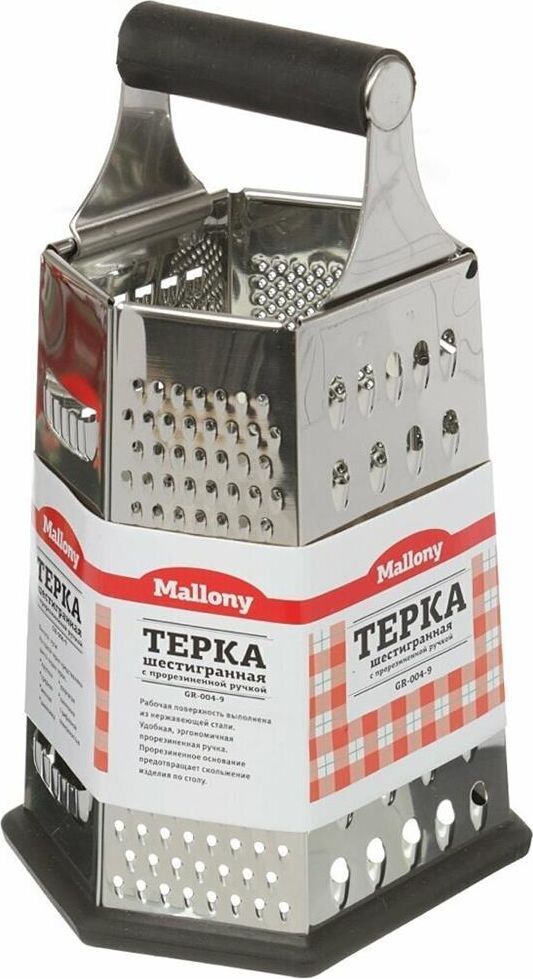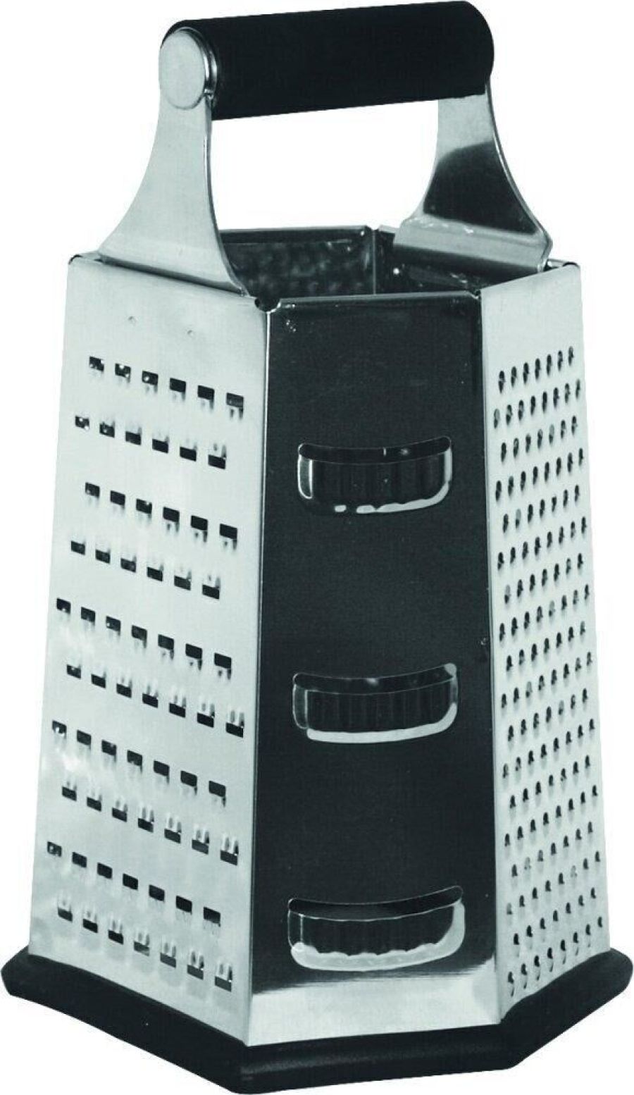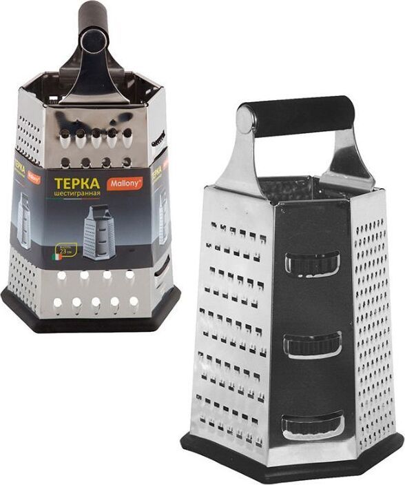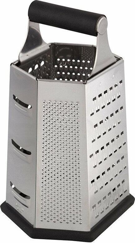 Терка 6-ти гранная Размер: 23 см Материал: нержавеющая сталь (304), ABS пластик, TPE Ручка: прорезиненная Толщина стали 0,3 мм