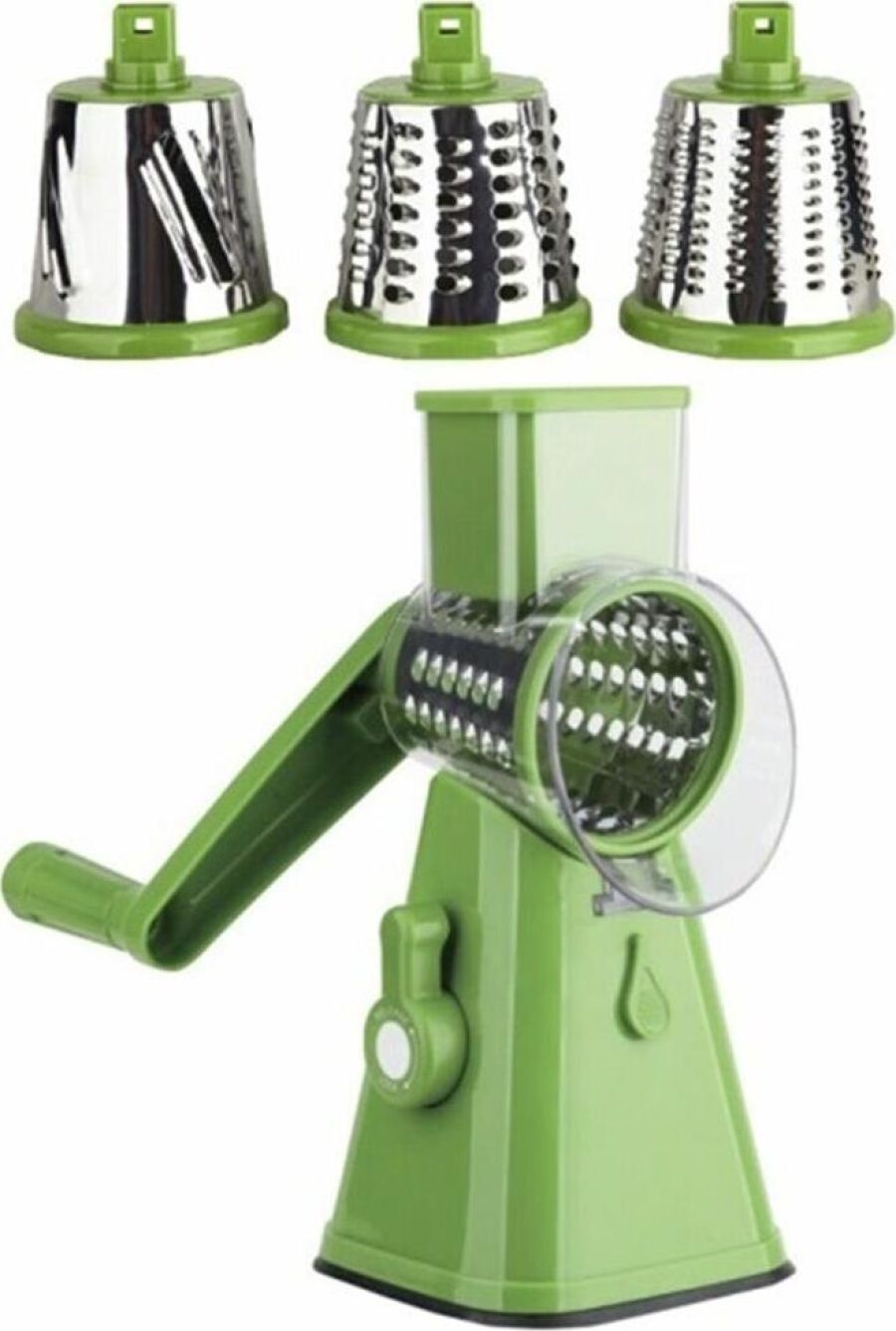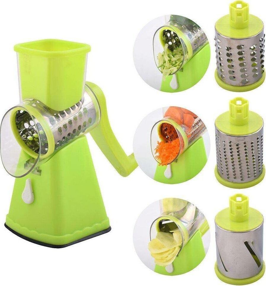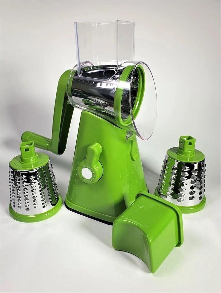 Ручная овощерезка Мультислайсер 3в1 Для фруктов и овощей Современная и многофункциональная овощерезка оборудована 3 сменными насадками: •Насадка "Зернистый барабан". Подходит для измельчения сыра, орехов, лука и других твердых продуктов •Грубое лезвие с большими отверстиями для крупной резки и шинковки. Идеально для шинкования капусты и других видов салатов. •Лезвие с длинными узкими прорезями, идущими наискосок. Насадка для приготовления домашних чипсов, салатов, запеченных овощных блюд из картофеля, цукини, огурцов. Овощерезка легко собирается и разбирается, что упрощает её хранение. Не скользит по столу. Основа изделия надежно крепится к любой чистой и сухой поверхности за счет присоски и блокирующего рычажка.