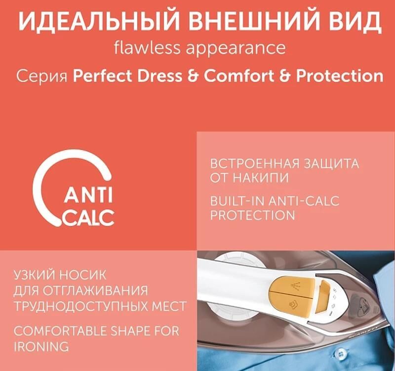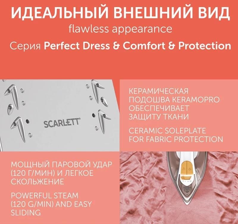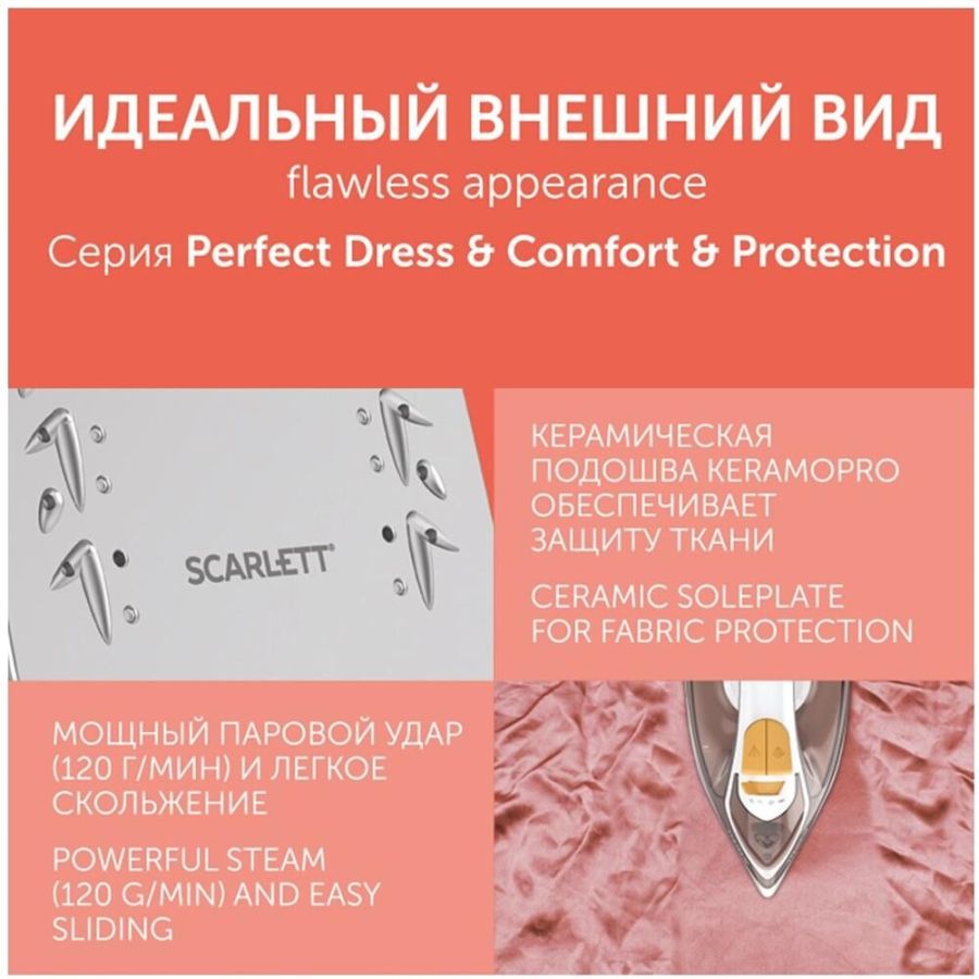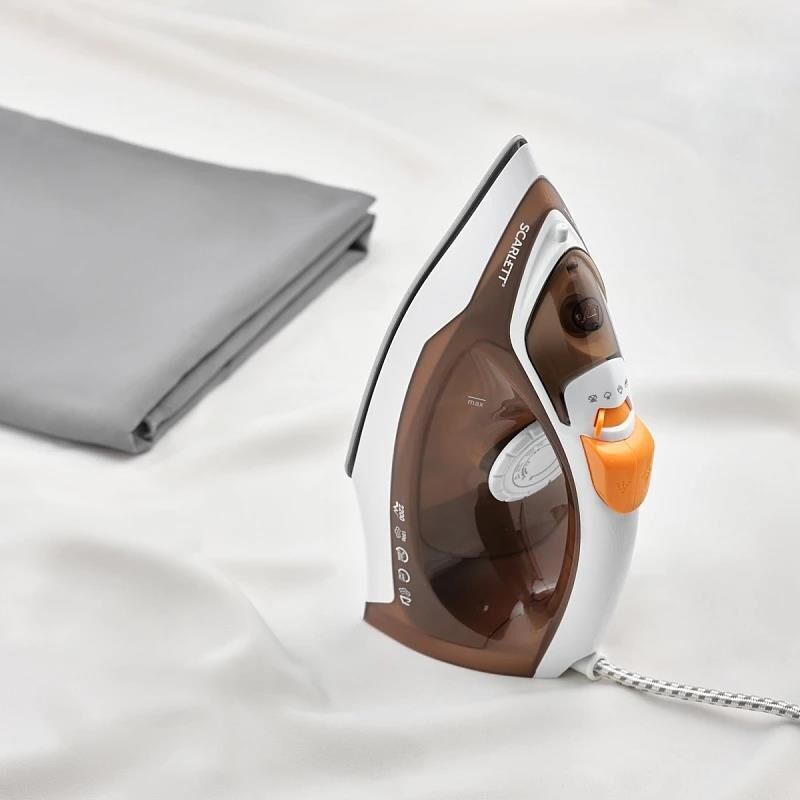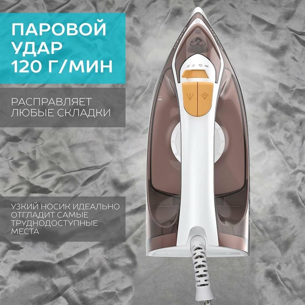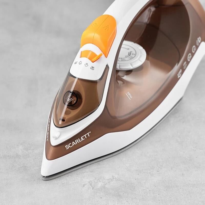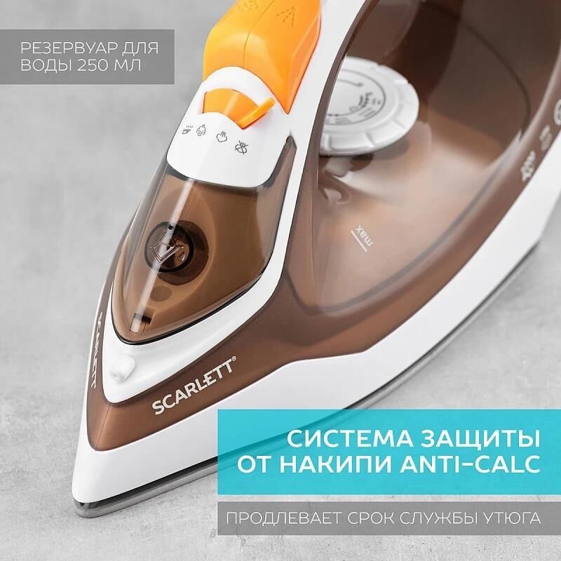 Мощность, Вт: 2200 Световой индикатор работы: Да Регулируемый пар до г/мин: 60 Паровой удар до г/мин: 120 Резервуар для воды, мл: 250 Функция разбрызгивания воды: Да Терморегулятор: Да Вертикальное отпаривание: Да Регулировка степени отпаривания: Да Покрытие подошвы: Керамическая подошва KeramoPro Самоочистка: Да Система защиты от накипи ANTI-CALC: Да Размер утюга Ш*В*Г, мм: 280*118*136 Шарнирное крепление шнура: Да Длина электрошнура, м: 1.6 Цвет: Коричневый Утюг Scarlett SC-SI30K47, выполненный в коричневом цвете, оснащён подошвой с керамическим покрытием KeramoPro, которая обеспечивает отличное скольжение и бережное отношение ко всем видам тканей. Максимальная мощность 2200 Вт позволит в считанные минуты справиться даже с тканями со сложной фактурой, а различные температурные режимы помогут выбрать оптимальный для того, чтобы самые деликатные ткани выглядели после глажения идеально. В режиме парового удара создает 120 грамм пара в минуту
