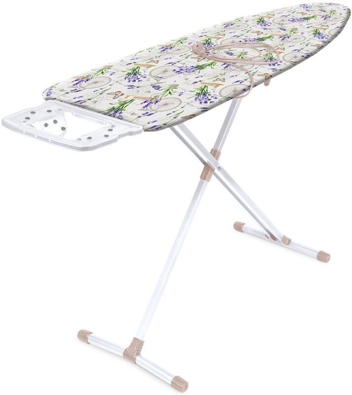 Размер рабочей поверхности 122х40см.Надёжная металлическая поверхность с отверстиями для пара Съёмный чехол из хлопка Плавно регулируемая высота до 0,9 м Подставка под утюг с термоустойчивыми вставками Электрический соединитель 1,6 м Устойчивые опоры с пластиковыми наконечниками для защиты напольного покрытия Фиксация в сложенном виде Максимальная нагрузка на гладильную поверхность - 25 кг
