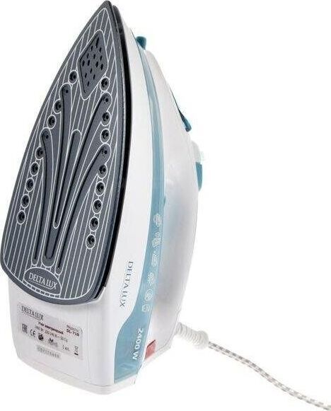 Максимальная мощность 2400 Вт Описание Керамическое покрытие подошвы Прозрачный резервуар для воды Индикатор нагрева утюга Терморегулятор Три рабочих режима: сухое глажение, отпаривание, разбрызгивание воды Возможность регулировки степени отпаривания Возможность вертикального отпаривания Функция «Паровой удар» Функция «Самоочистка» Функция «Антинакипь» Функция «Антикапля» Защита от перегрева Цвет: белый с серо-голубым Аксессуары Специальный стаканчик для заполнения резервуара водой.