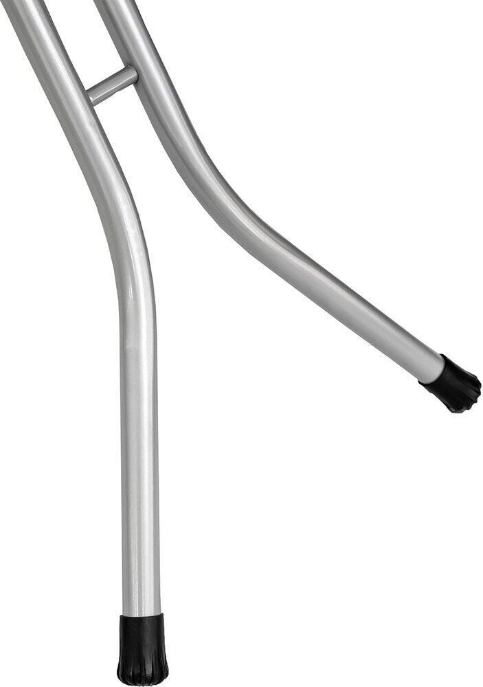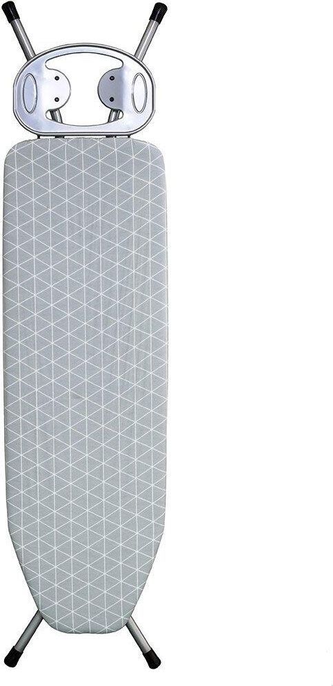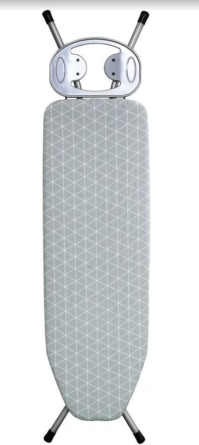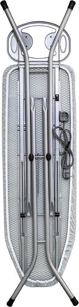 Рабочая поверхность 120х38см. Регулировка высоты 70-90см.Метал. перфорированный гладильный стол. (Метал. сетка). Чехол с подкладкой (100% хлопок), чехол с антипригарным покрытием.Электростатическая порошковая покраска. Подставка под утюг. Вес 5,465кг.
