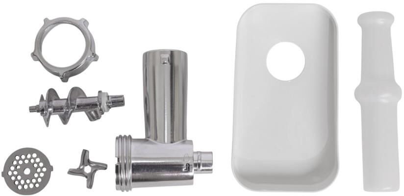 Максимальная мощность 1600 Вт Производительность 1,6 кг/мин Функция «Реверс» Пластиковый лоток Толкатель для продуктов Нож из высококачественной стали Защита двигателя от перегрузки 1 решетка в комплекте: 5 мм Противоскользящие резиновые ножки