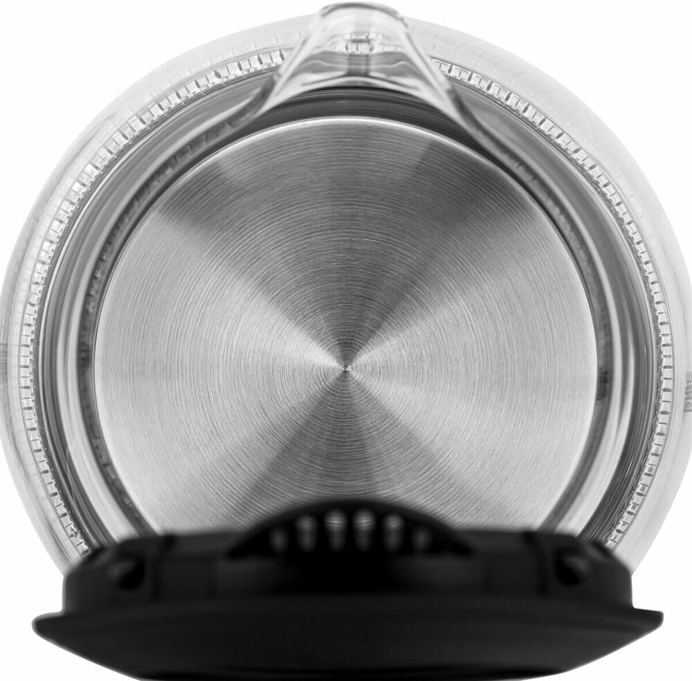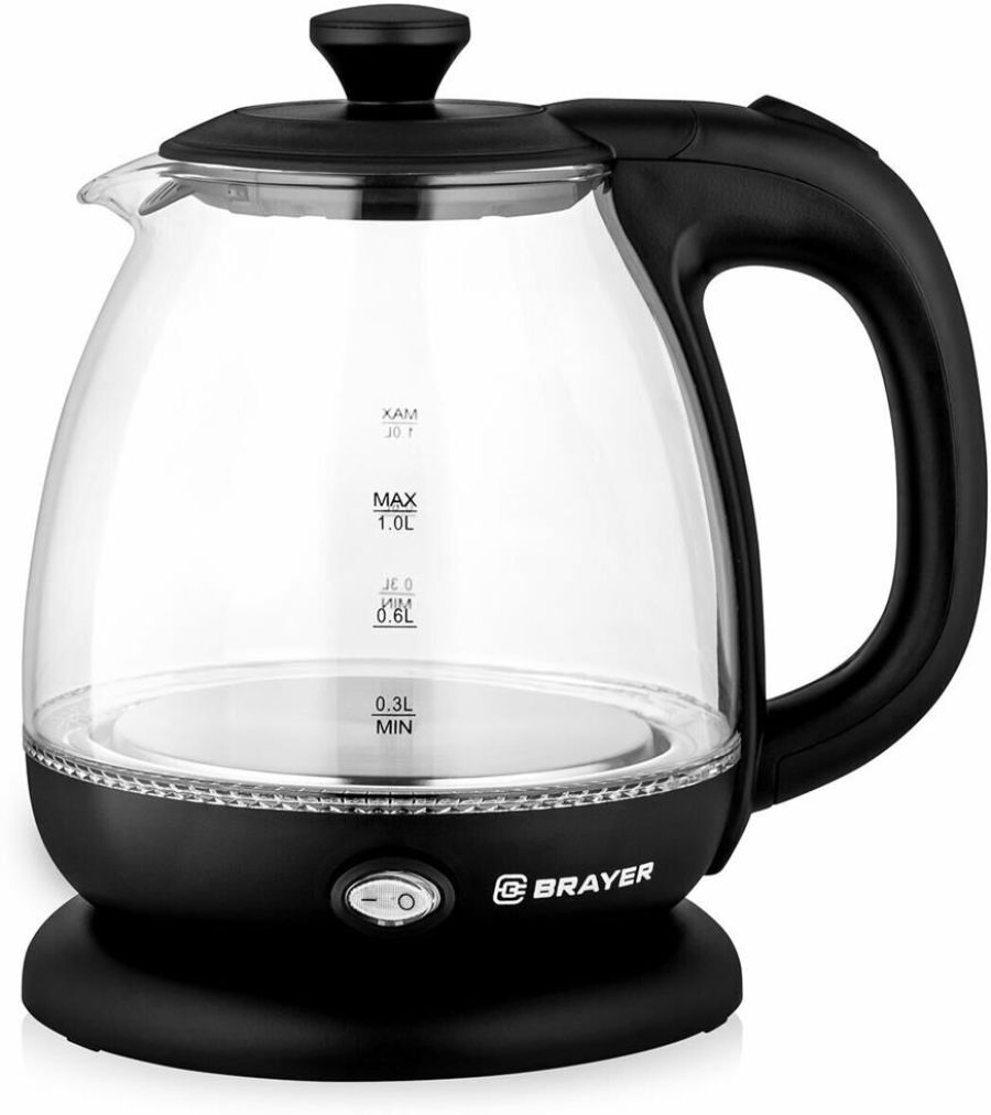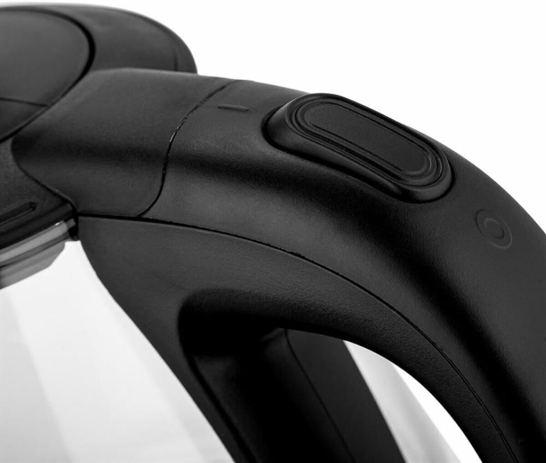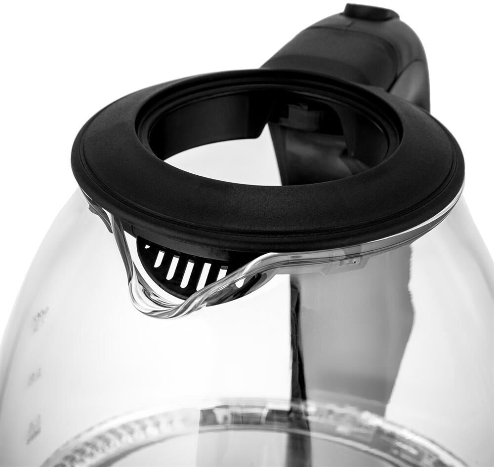 Максимальная мощность 1100 Вт Максимальный объем 1 литр Корпус из высокопрочного термостойкого стекла Внутренняя подсветка Автоотключение при закипании воды Отключение при отсутствии воды Моющийся фильтр Противоскользящее основание Электропитание 220-240 В, ~50-60 Гц