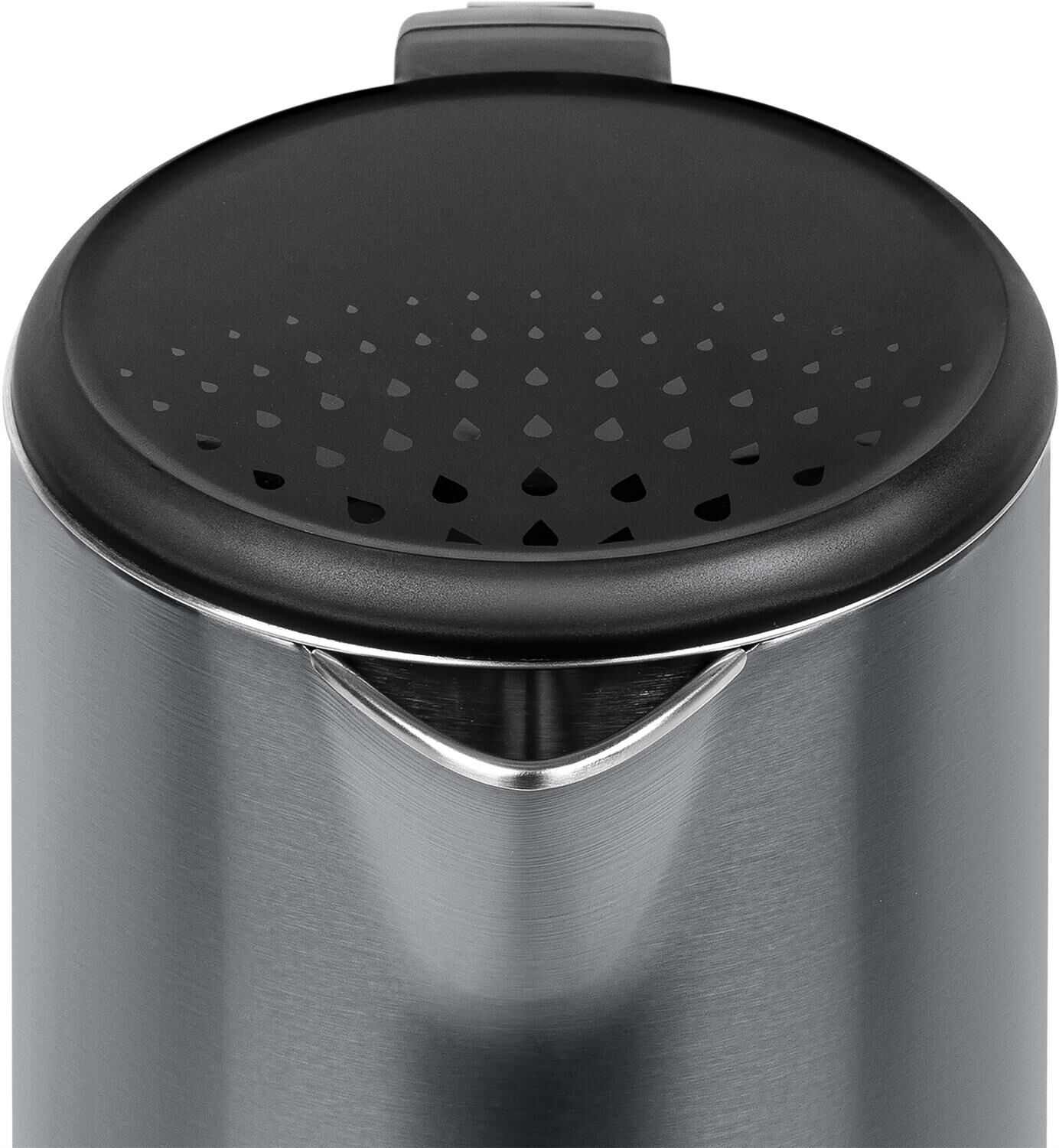 Объем чайника (Л) 1,7 Мощность (Вт) 1850-2200 Двойные стенки Да Антискользящая база Да Тип нагревательного элемента Закрытый Бесшовная технология колбы Да Отключение при отсутствии воды Да База с поворотным контактом Да Шкала уровня воды Да, внутри чайника Цвет корпуса графит Материал корпуса Нержавеющая сталь