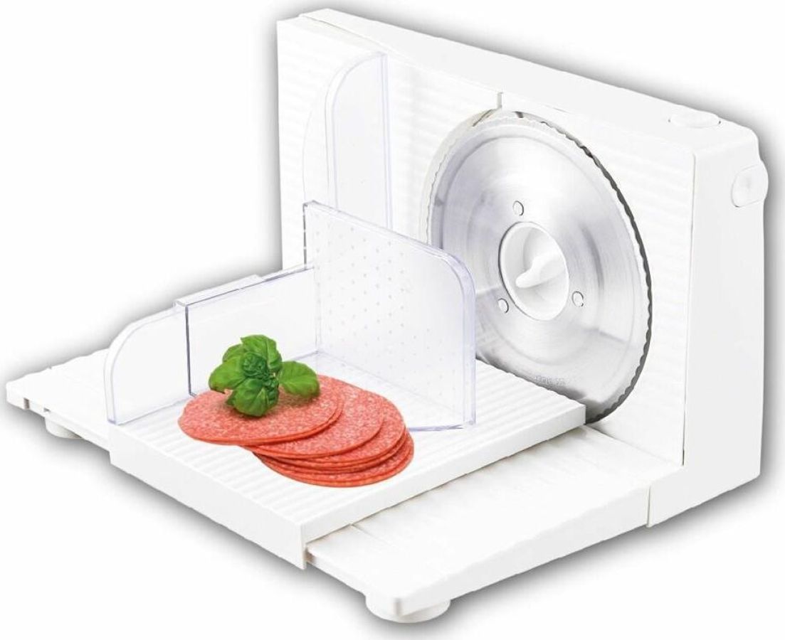 Ломтерезка 1 режим скорости Мощность: 150Вт. Нож: 170мм. Регулировка толщины нарезки: 1-15мм. Пластиковый толкатель продуктов Максимальное время непрерывной работы: КВ МАКС = 3 мин. Длина шнура: 1м. Сеть: 220-240В, 50Гц