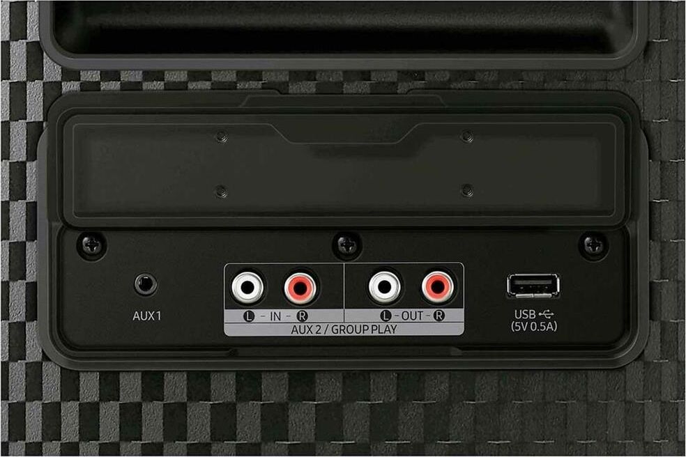 Режим переменного тока: 160 Вт Режим работы от батареи: 80 Вт. Режимы звука PARTY, STANDARD(MONO), HIPHOP, EDM, ROCK, LATIN, HOUSE, REGGAE. USB Music Playback Да. Поддержка Bluetooth Да. Bluetooth Codec SBC, AAC, aptX. Bluetooth Multi Connection Да. USB-разъём Да (x1). Включение модуля Bluetooth Да. Аудиовход Да (3.5 мм). Wired Group Play Да. Wireless Group Play Да. Потребляемая мощность в режиме ожидания < 0.5 Вт. Поддержка стандарта энергосбережения Energy Star Да. Дистанционное управление Да.