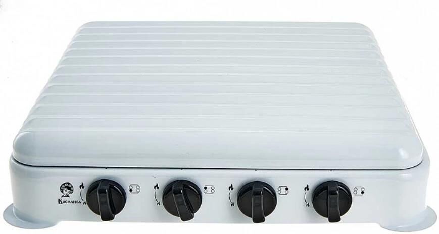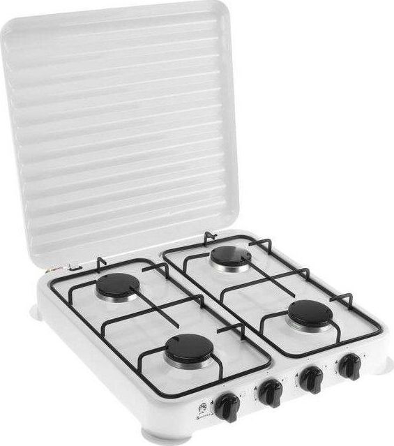 Параметры Номинальная тепловая мощность 2,2х4 кВт Номинальный расход газа 640 г/ч Номинальное давление используемого газа 3,0 кПа Вид сжиженного газа пропан/бутан Количество конфорок 4 конфорки Тип настольная Тип розжига ручной Максимальная нагрузка на конфорку 10 кг