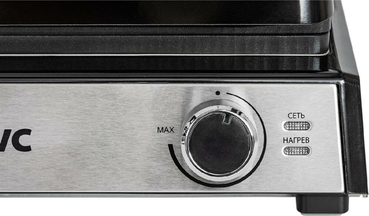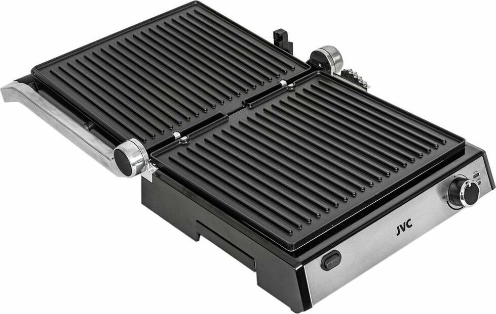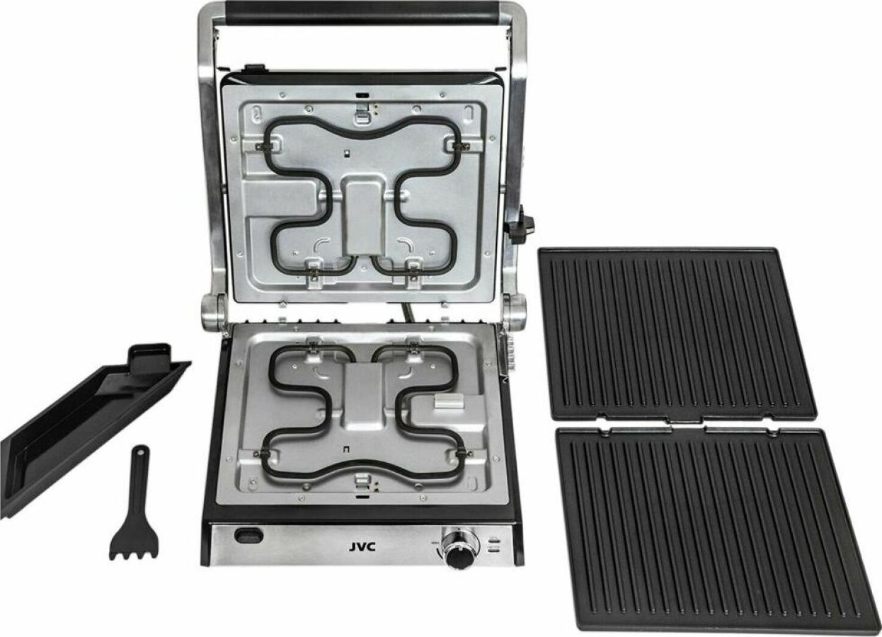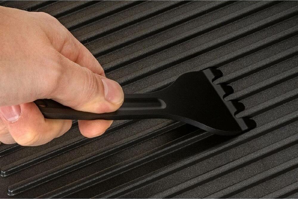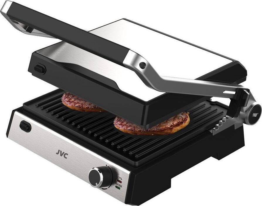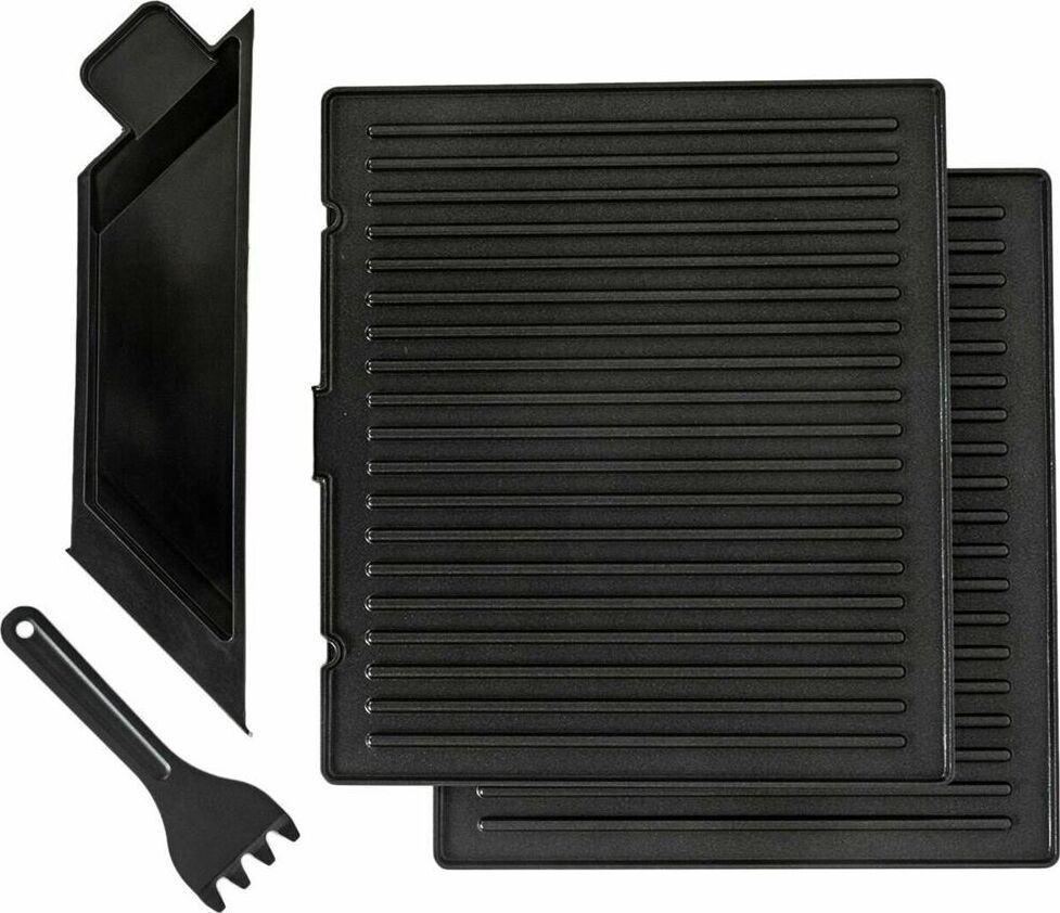 Гриль электрический, мощность 2000 Вт, корпус из матовой нержавеющей стали, плавающая крышка для регулировки толщины с 5 различными настройками высоты, съемные антипригарные панели, встроенный поддон для жира, регулятор температуры с индикатором, скребок в комплекте, панели можно мыть в посудомоечной машине