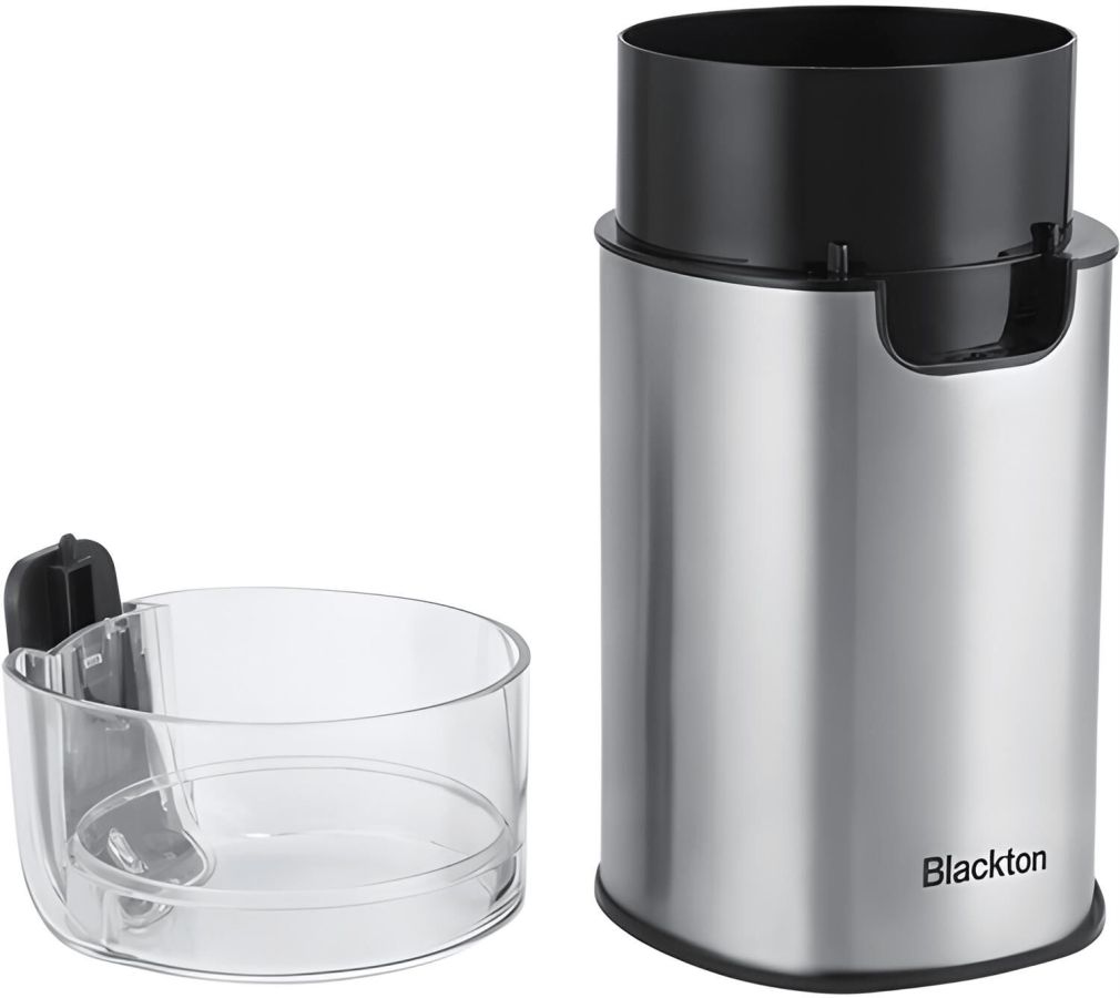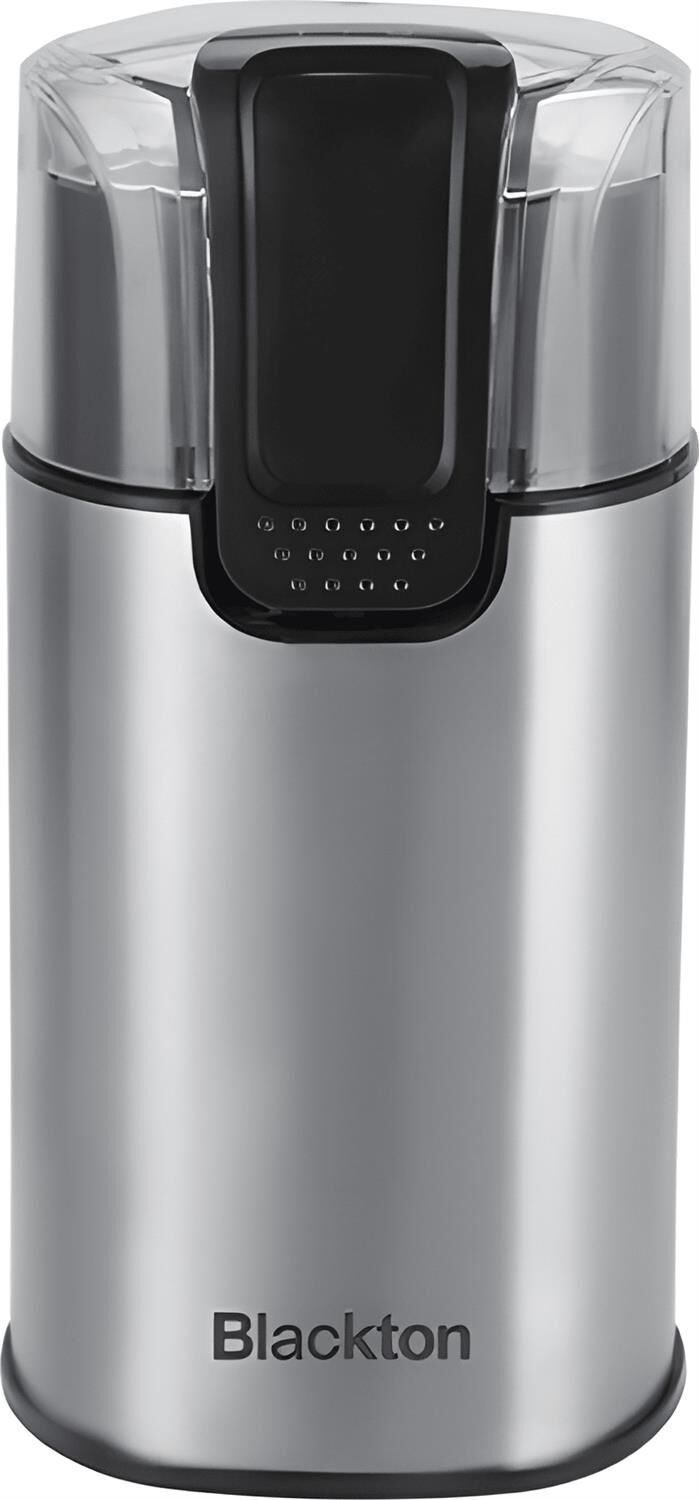 BLACKTON BT CG1114 Мощность 200 Вт Нож из нержавеющей стали 60 г максимальная загрузка Корпус из нержавеющей стали Защита от включения при открытой крышке Отсек для сетевого шнура Подходит для измельчения и для помола круп, орешков, специй
