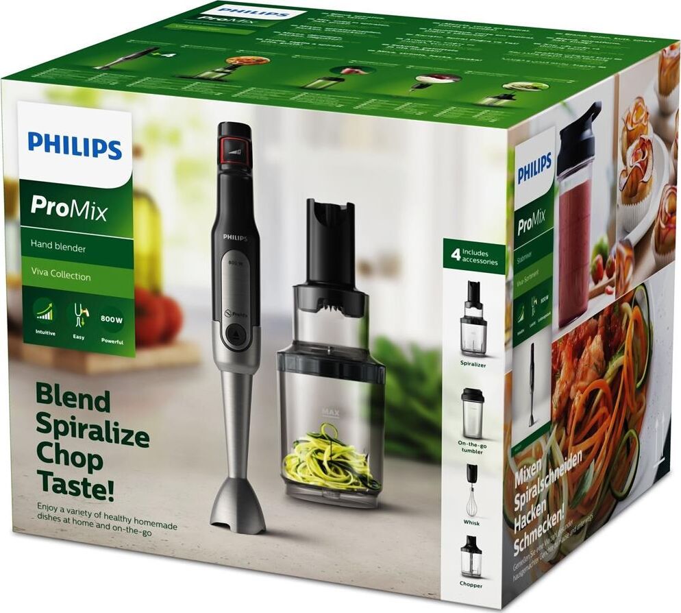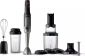 Тип устройства погружной (ручной) блендер. Объем шейкера 500 мл. Мощность 800 Вт. Плавная регулировка скорости. Управление одной кнопкой. Турборежим. Импульсный режим. Емкости чаша для измельчения. Шейкер (дорожная чаша) 1 шт. Насадки ножка-блендер, венчики для взбивания, нож для измельчителя, диск для шинковки / нарезки / 3 шт. Питание сеть. Материал ножки-блендера металл.