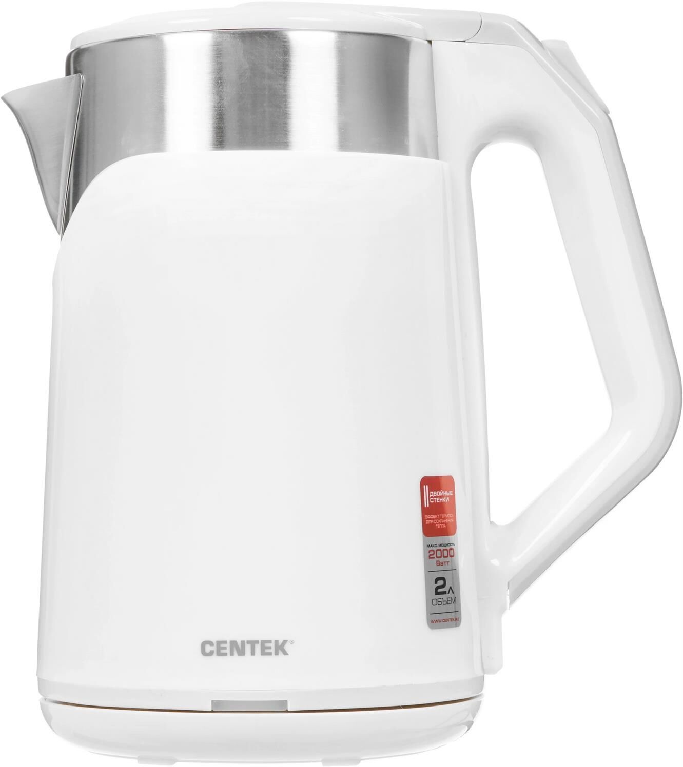 CENTEK CT-0023 Мощность2000 Вт Объем2.0 л Двойные стенки Удобная ручка Эффект термоса для сохранения тепла Защита от включения без воды Автоматическое выключение Скрытый нагревательный элемент