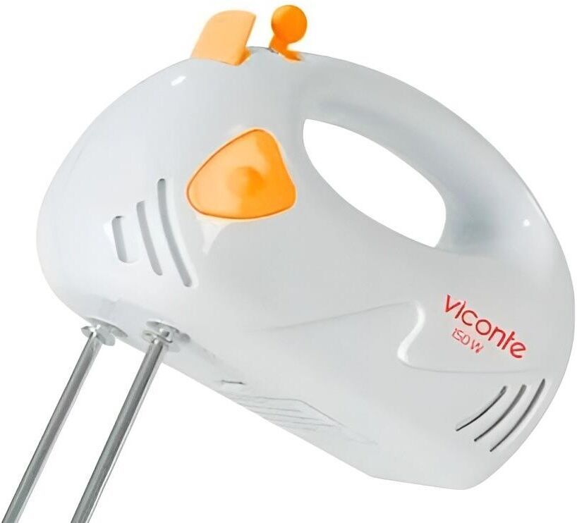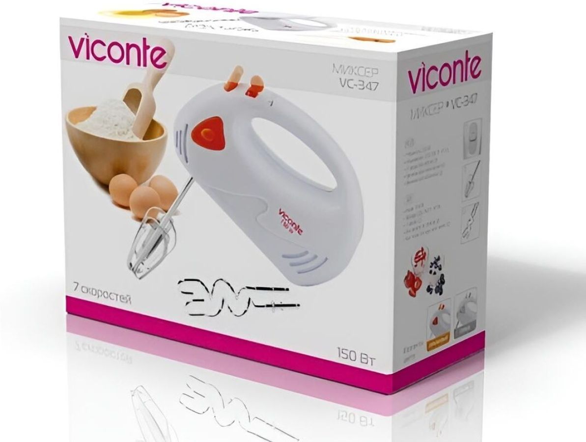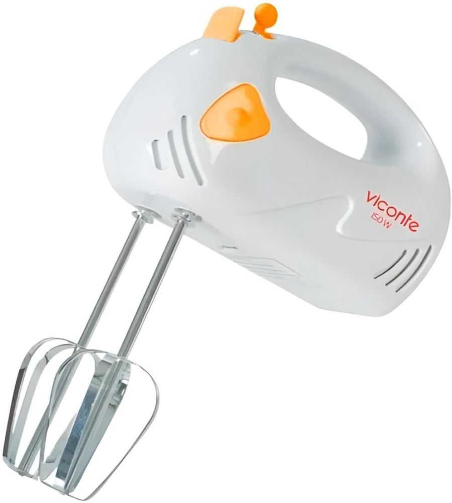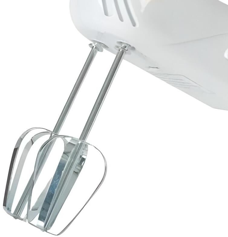 Миксер,150W: 7 скоростей работы, кнопка извлечения насадок, двойной набор насадок: два венчика для взбивания яиц и кремов, две насадки для размешивания тяжелого теста, смешивание жидкостей, замешивание теста, приготовление пюре, взбивание сливок и белков.