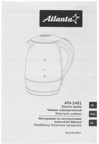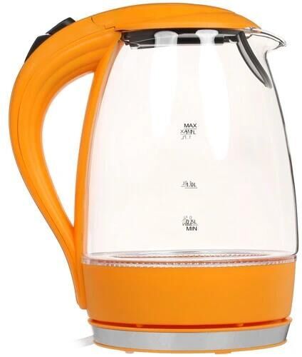 Мощность 2000 Вт. Корпус из термостойкого стекла. Иллюминация. Специальная ручка от скольжения. Поворот на подставке на 360°. Быстрое закипание. Фильтр от накипи. Закрытый нагревательный элемент. Автомат. отключение. Защита от перегрева без воды.