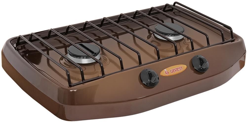 Габариты, ШхГхВ, см: 50х37.4х10; Цвет: коричневый; Ширина, см: 50; Фасад: эмалированный; Варочная поверхность: эмалированная; Решетки стола: стальные; Присоединительная резьба газопровода: G 1/2; Ножки регулировочные; Рабочая поверхность: газовая; Количество зон приготовления: 2; Мощность горелок стола, кВт: 1,7; Комплектность: комплект сменных сопел, шланг присоединительный; Масса нетто, кг: 3,7