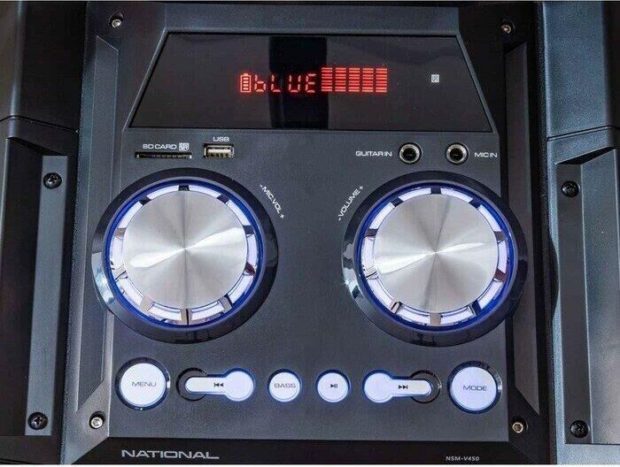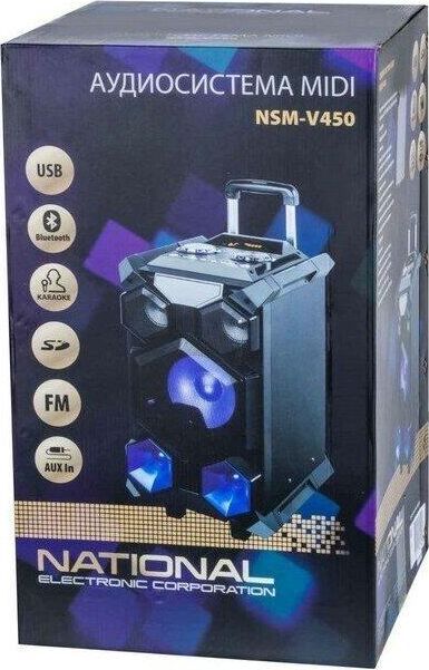 Выходная мощность RMS, Вт.: 120 Поддержка Bluetooth: есть Поддержка A2DP: есть Радио-тюнер: FM Регулировка низких и высоких частот: есть Эхо-эффект канала микрофона: есть Функция караоке: есть Аудио форматы: MP3/WMA/FLAC/WAV/APE/AAC Подсветка: 3-х цветная светодиодная Интерфейсы: вход для подключения микрофона, вход для подключения гитары, USB разъем, SD разъем, двухканальный линейный вход Комплектация: миди-система, адаптер питания, аудиокабель, полнофункциональный пульт ДУ, гарантийный талон, инструкция на русском языке Материал корпуса: пластик Цвет: черный Аккумулятор, мАч.: 4500 Электропитание, В., Гц.: 100-240, 50-60 Максимальная потребляемая мощность, Вт.: 800