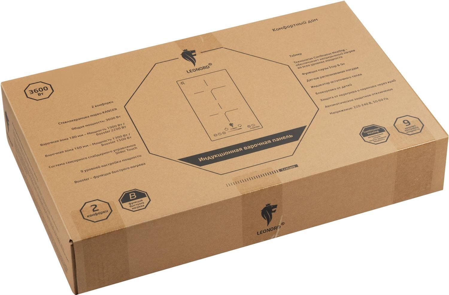2 конфорки Стеклокерамика марки KANGER Общая мощность: 3600 Вт Варочная зона 180 мм - Мощность 1900 Вт / Booster 2200 Вт Варочная зона 160 мм - Мощность 1300 Вт / Booster 1500 Вт Система сенсорного слайдерного управления Slider Touch 9 уровней мощности Booster - функция быстрого нагрева Таймер Технология Continuous Heating - обеспечивает непрерывный нагрев на всех уровнях мощности Функция паузы Stop & Go Индикатор остаточного тепла Блокировка от детей Защита от перегрева и перелива через край Автоматическое защитное отключение Размер изделия: 288*520*56 мм Напряжение: 220-240 В, 50-60 Гц Гарантия 2 года