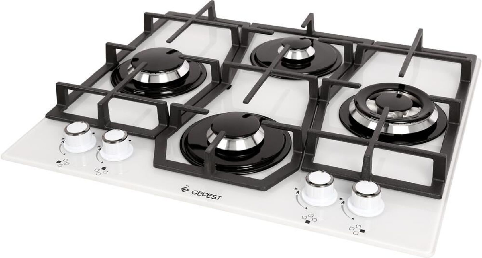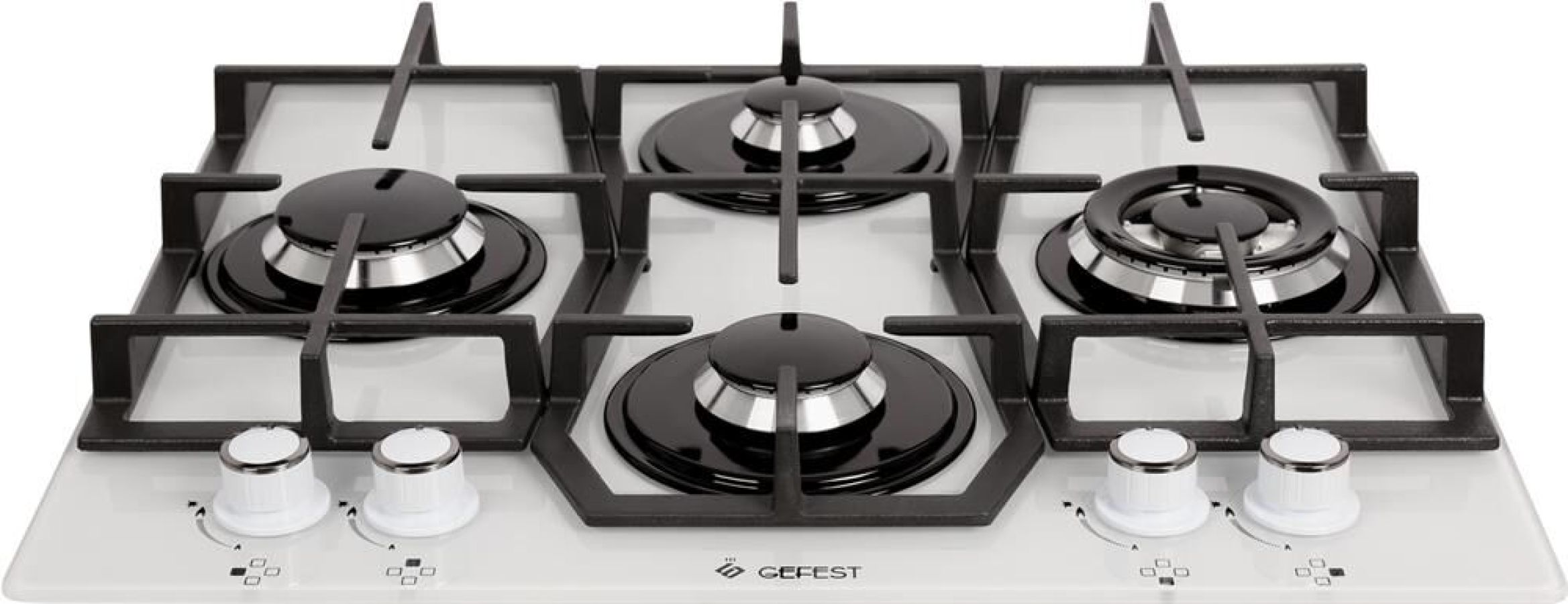 Размеры монтажного проема, ШхГ, см 55,4 х 48,6. Ширина, см 60. Глубина, см 52,5. Высота, см 10 * Тип подключения Газ * Количество зон приготовления 4 * Цвет модели Белый * Материал варочной поверхности Стекло * Материал решеток варочной поверхности Чугун * Газ-контроль горелок стола * Электророзжиг горелок стола строен в ручки * Двухзонная горелка варочной поверхности *