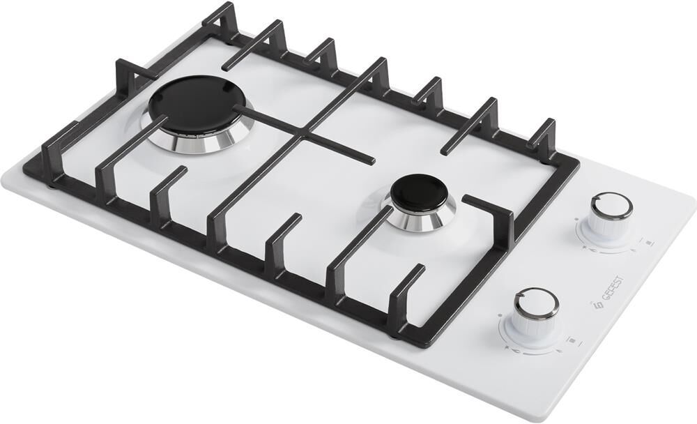 Габариты, ШхГхВ, см: 30х53х9,5; Тип: газовая; Количество зон приготовления: 2; Варочная поверхность: эмалированная; Размеры монтажного проема, ШхГ: 26.1x48.6; Ширина, см: 30; Цвет: белый; Класс электробезопасности: I; Диапазон номинальных напряжений, В: 220-230; Присоединительная резьба газопровода: G 1/2-В; Мощность газовых горелок стола: Передняя правая, кВт: 1,0; Задняя правая, кВт: 3.0; Решетки горелок стола: чугунные; Электроподжиг горелок стола: встроен в ручки; Газ-контроль горелок стола; Управление: механическое; Комплектность: комплект сменных сопел, накладка для посуды малого диаметра; Сетевой шнур и вилка: в наличии