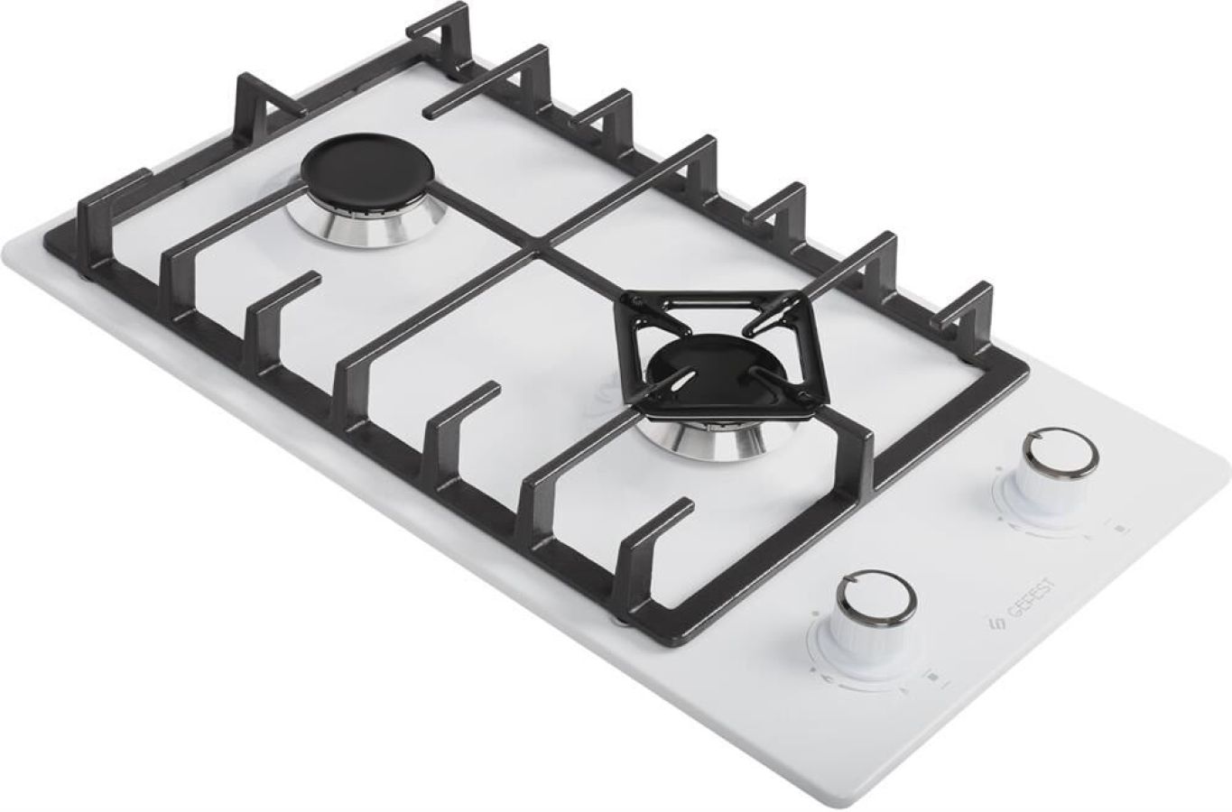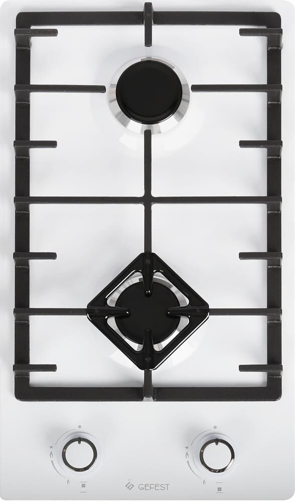 Габаритные размеры ШхГхВ: 30х53х9,5 см * Цвет: белый * Эмалированная варочная поверхность * Двухгорелочный стол * Газ-контроль горелок стола * чугунные решетки горелок стола * две средние горелки * фиксированное положение «малое пламя» * электророзжиг горелок, встроенный в ручки *