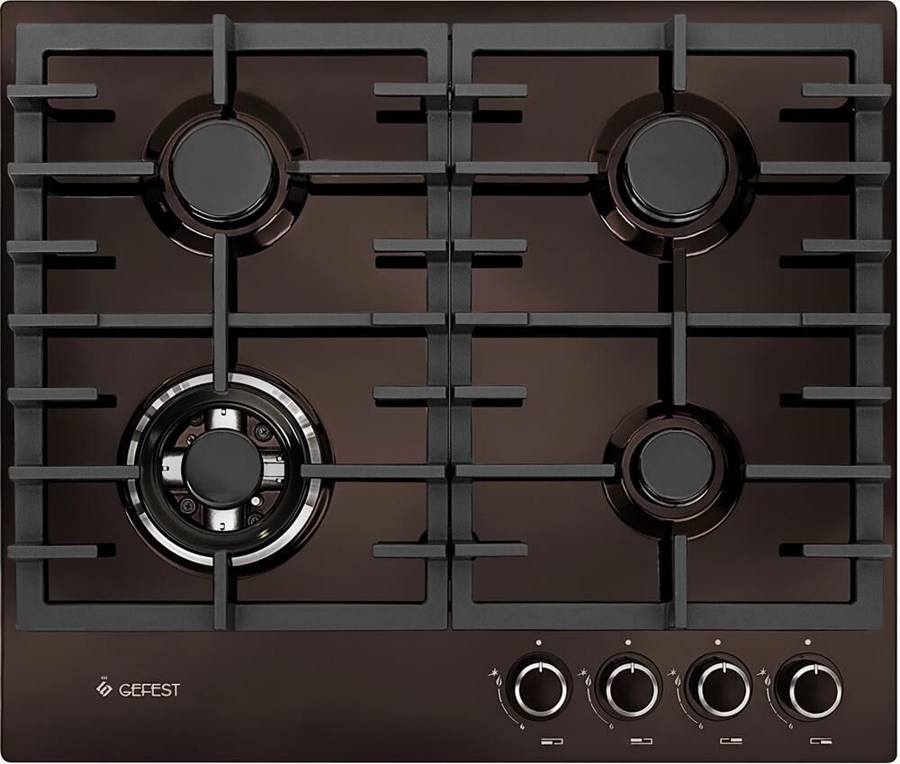 Габариты, ШхГхВ, см: 60x51.5x9.5; Тип: газовая; Количество зон приготовления: 4; Варочная поверхность: эмалированная; Размеры монтажного проема, ШхГ: 55.8x49; Ширина, см: 60; Цвет: коричневый; Класс электробезопасности: I; Диапазон номинальных напряжений, В: 220-230; Присоединительная резьба газопровода: G 1/2-В; Решетки горелок стола: чугунные; Специальные конфорки: двухконтурная горелка; Электроподжиг горелок стола: встроен в ручки; Газ-контроль горелок стола; Управление: механическое; Комплектность: комплект сменных сопел, накладка для посуды малого диаметра; Сетевой шнур и вилка: в наличии