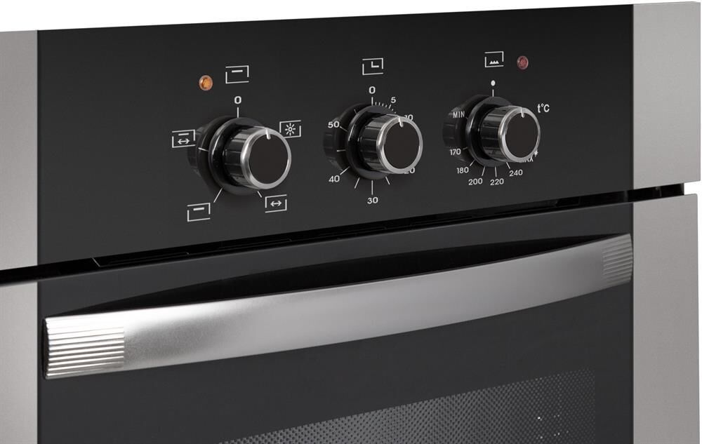 Габаритные размеры ШхГхВ: 59.8х56.5х59.5 см Цвет: нержавеющая сталь Полезный объём духовки: 52 л Вертел с электроприводом Подсветка духовки двойная Газ-контроль духовки Съемные проволочные направляющие духовки Газовая основная горелка Таймер механический Гриль электрический Электророзжиг горелок, встроенный в ручки Тип: газоэлектрическая Фасад: стеклянный Диапазон номинальных напряжений, В: 220-230 Присоединительная резьба газопровода: G 1/2 Сетевой шнур и вилка Класс электробезопасности: I