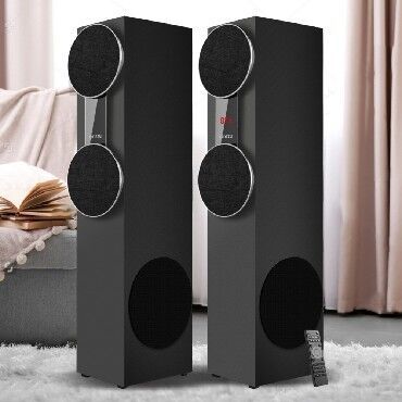 Напольная активная стерео система 2.0 c Bluetooth 4.2 (2x60Вт, LED дисплей, 40-20000Гц, AUX, USB-flash/SD-card, FM-радио, эквалайзер, ПДУ, питание 220В, корпус MDF+ABS). Входные интерфейсы - Стерео аудио (RCA), USB 2.0, Разъем для антенны. Количество динамиков ВЧ/СЧ/НЧ - 2/2/2. Чувствительность - 73дБ. Размеры - 850x330x175мм.