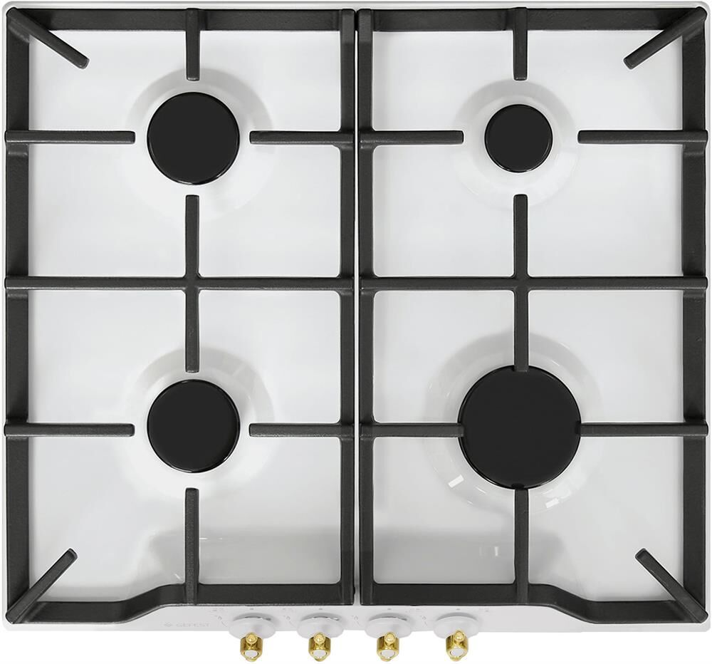 Габаритные размеры ШхГхВ: 59х52х9.4 см Газ-контроль горелок стола Чугунные решетки горелок стола Фиксированное положение «малое пламя» Электророзжиг горелок, встроенный в ручки Тип: газоваяКоличество зон приготовления: 4 Варочная поверхность: эмалированная Диапазон номинальных напряжений, В: 220-230 Присоединительная резьба газопровода: G 1/2-В Сетевой шнур и вилка Класс электробезопасности: I Цвет: белый Дизайн: ретро