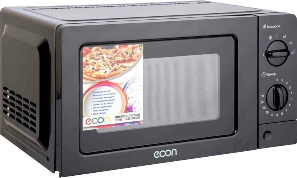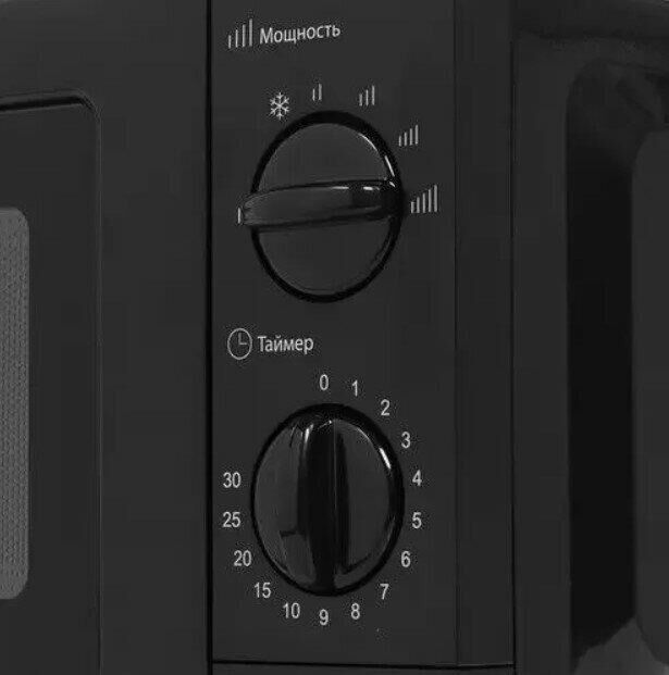 Печь микроволновая, Объем 20 литров, Мощность 700 ватт, Механическое управление, 5 уровней мощности, Таймер, Диаметр поворотного стола 245 мм, Функция разморозки, Цвет корпуса: Черный