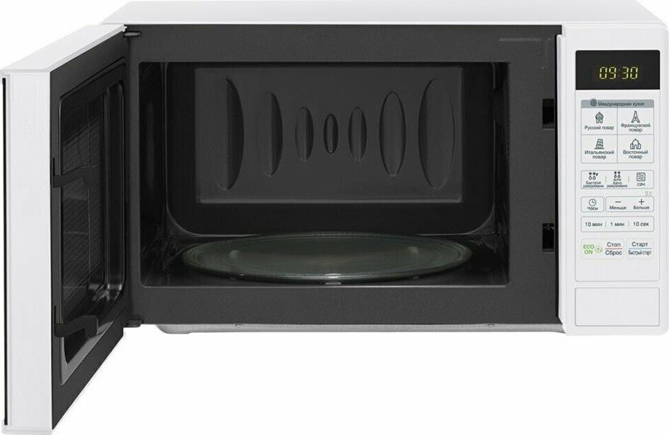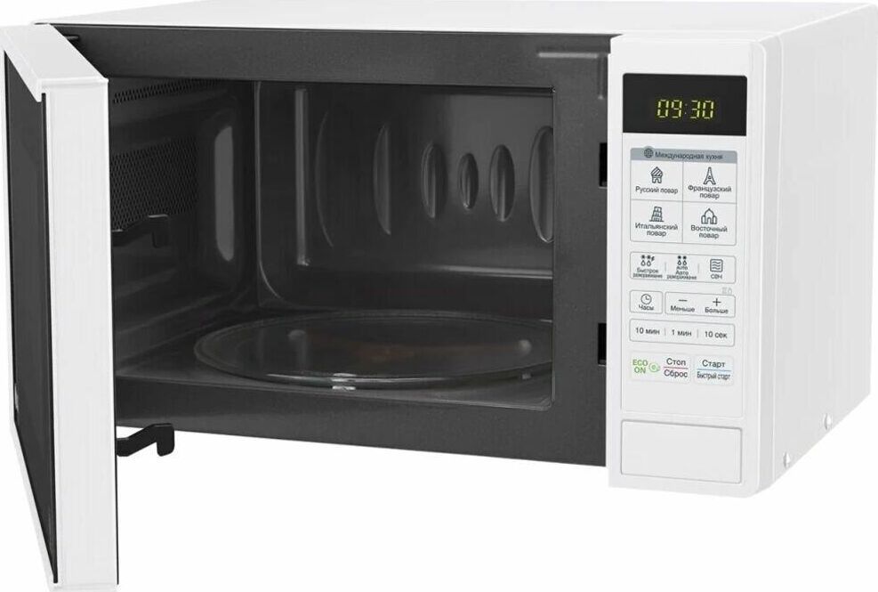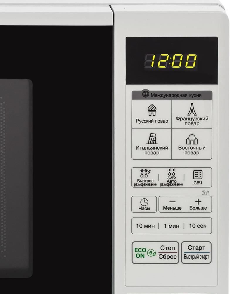 Объем 20 л. Мощность микроволн 700 Вт. Тип управления электронное. Дисплей есть. Открывание дверцы кнопка. Диаметр поворотного стола 245 мм. Автоматическая разморозка есть. Блокировка от детей есть. Цвет белый. Размеры (ШхВхГ) 45.5 х 28.4 х 31.2 см. Вес 11.5 кг.