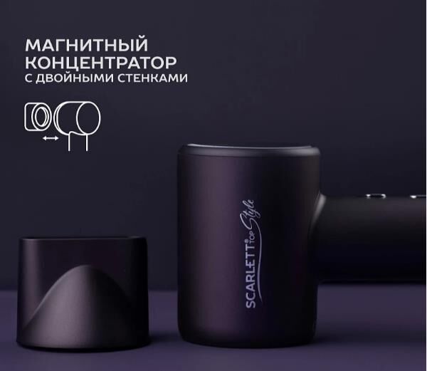 Мощность, Вт: 1600 Тип мотора: BLDC Принадлежность к линейке: Top Style Количество скоростных режимов: 2 Количество температурных режимов: 3 Возможность выбора холодного и горячего воздуха: Да Насадка - концентратор: Да Функция памяти: Да Генератор ионов: Да LED индикация температуры: Да Противоскользящее покрытие SOFT TOUCH: Да Автоматическое отключение при перегреве: Да Длина электрошнура, м: 1.8 Особенности модели: 8 режимов, магнитный концентратор, генератор ионов Чехол для хранения: Да Цвет: Аметист