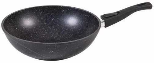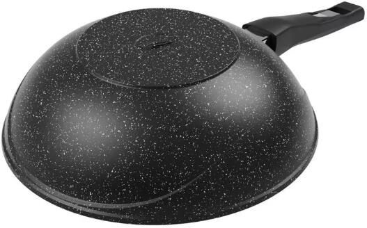 WOK. Диаметр крышки 28 см. Материал посуды пищевой алюминий. Ручка съемная с покрытием soft touch. Внутреннее Антипригарное покрытие GREBLON. Толщина стенок 4 мм. Толщина дна (мм) 6 мм