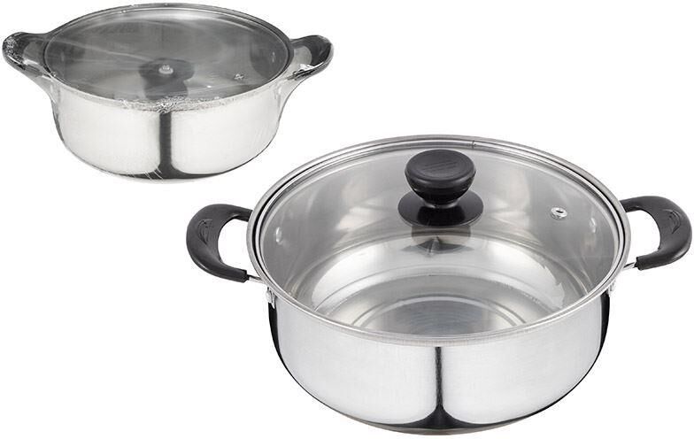 Кастрюля Promo, объем 2,2 л, из нержавеющей стали с крышкой из жаропрочного стекла Материал: нерж сталь, жаропрочное стекло, нейлон толщина стенок 0,3 мм, объем 2,2 л. Размер: 21,5 (диаметр)*8,5 (высота без крышки) см. Размер с ручками: 28 см. Высота с крышкой: 12,4 см. Дно однослойное. Подходит для всех типов плит. Не рекомендуется мыть в посудомоечной машине. Зеркальная полировка корпуса внутри и снаружи. Отметки литража. Крышка из жаропрочного стекла С-типа с отверстием для выпуска пара. Ручки: нерж сталь+ нейлон. Упаковка: стикер+термоусадочная пленка.